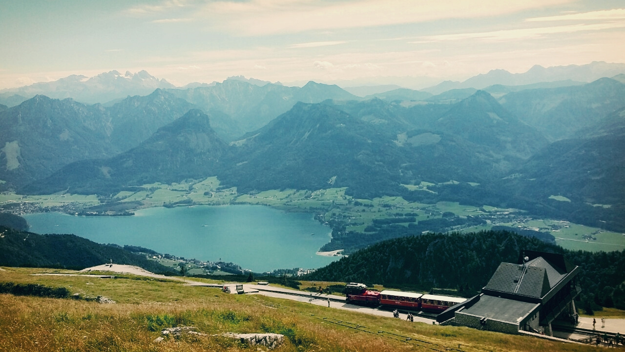 샤프베르그 산 정상에서 보이는 호수와 산들