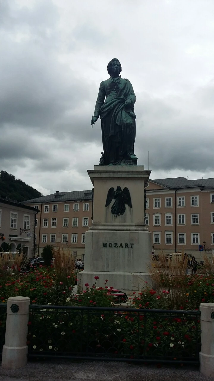 잘츠부르크, 모짜르트 생가 앞, 그의 동상