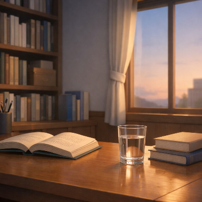 책상 위에 펼쳐진 독서대와 준비된 책,