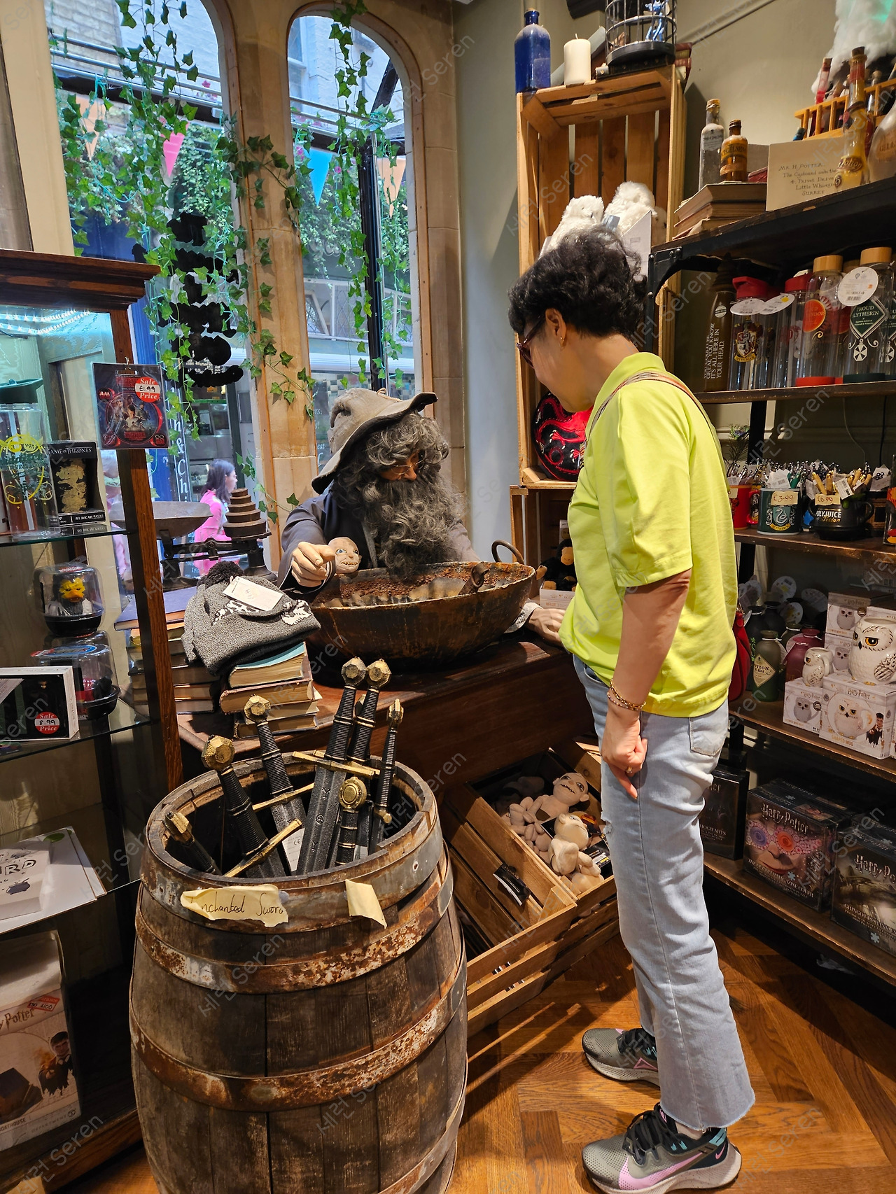 캠브리지 필수 코스인 캠 강(River Cam) 근처 다리들을 보기 위해 이동했다. 중세 도시 느낌이 나는 골목으로 들어가자 영국 어디에서나 볼 수 있는 해리포터 기념품 가게가 보였다. 내가 구경하고 싶어서 해리포터와 헤르미온느만 아는 엄마를 꼬셔 함께 들어갔다. 가게에는 해리포터 외에도, 마법과 기사단을 연상시키는 장난감들을 팔고 있었다.