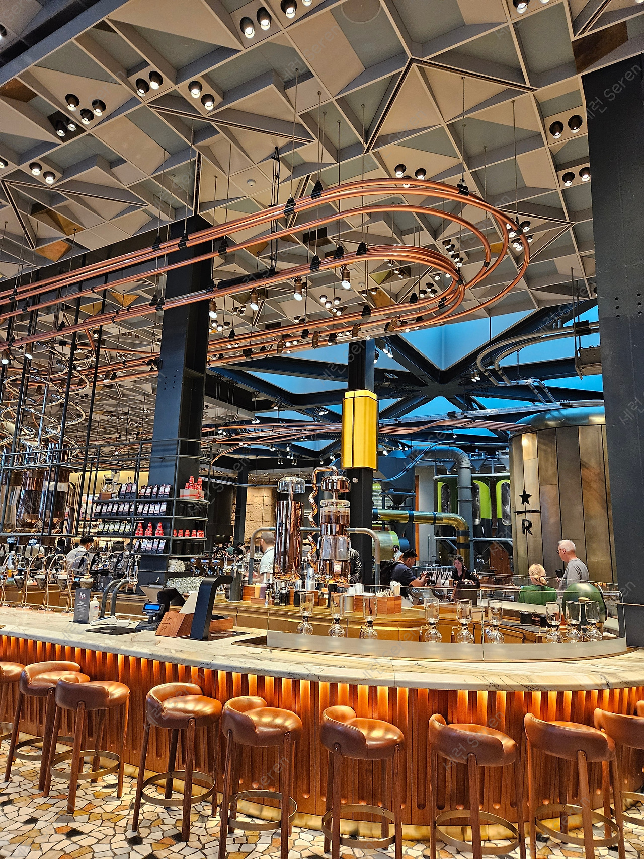 이어서 우리는 Starbucks Reserve™ Roastery Milano로 이동했다. 이곳은 이탈리아 최초이자 유럽 최대 스타벅스 매장이라고 한다. 또한, 고대 우체국이자 종합 금융 중심지였던 Palazzo delle Poste 건물을 개조하여 만든 공간이라고 한다. 정문 앞에 가드가 서있는 것부터, 어마어마한 매장의 크기와 거대한 로스팅 기기까지 모든 게 인상적이었다.
