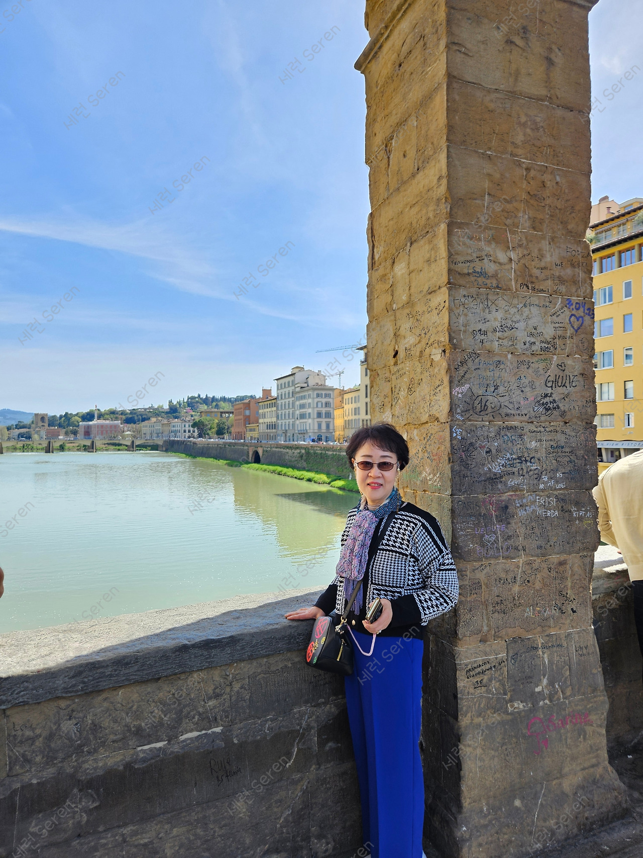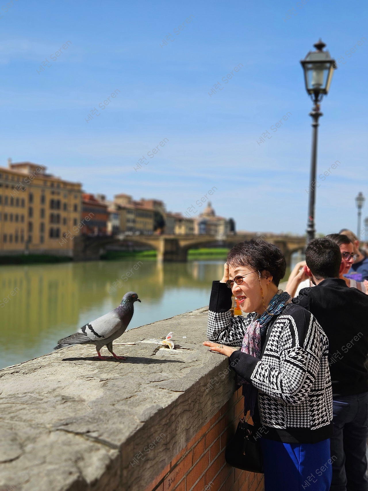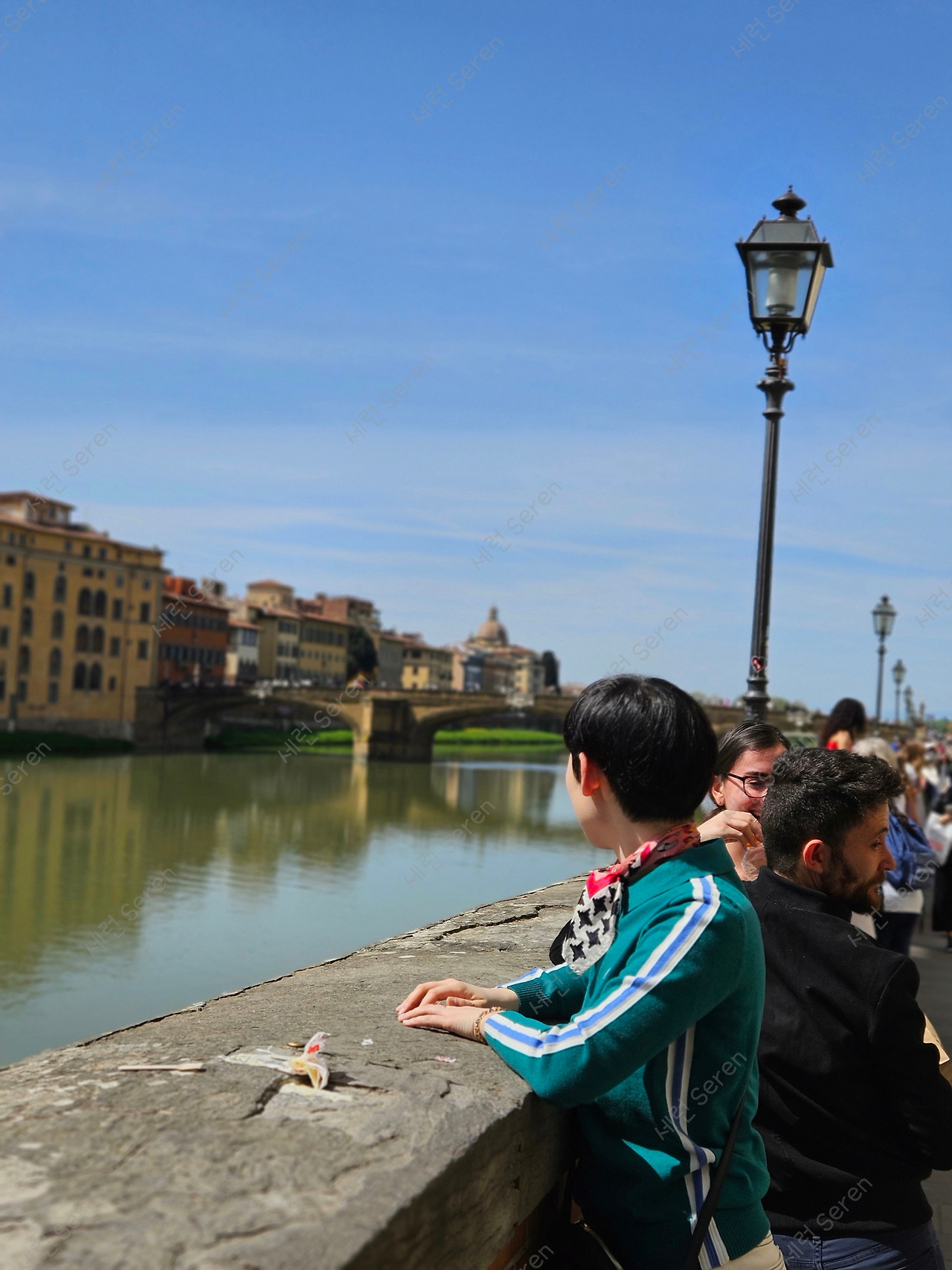 베키오 다리는 다리 위에 상점과 통로가 있는 세계적으로 유일한 구조물 중 하나라고 한다. 원래는 정육점, 어시장, 가죽상이 있었지만, 악취와 환경 문제 때문에 메디치 가문이 16세기경 모든 식료품 상인을 쫓아내고 금은세공업자만 허용했는데 그 전통이 지금도 이어지고 있다. 덕분에 강 건너편까지 줄지어 이어지는 금은방들을 구경하며 천천히 걸었다.