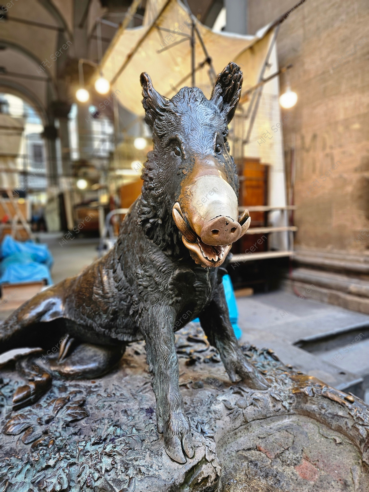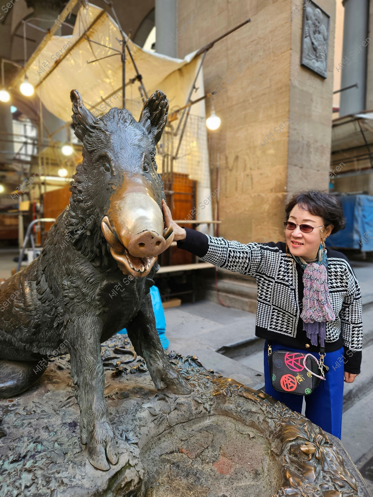 구경을 마치고 우피치 미술관 투어 미팅장소로 이동했다. 가는 길에 신시장(Mercato Nuovo) 근처의 멧돼지 동상(Fontana del Porcellino)을 들렀다. 이 멧돼지의 코를 만지면 '다시 피렌체로 돌아온다'는 행운의 의미가 있다고 한다. 그래서인지 청동상에서 코 부분이 반질반질하게 닳아 있었다.