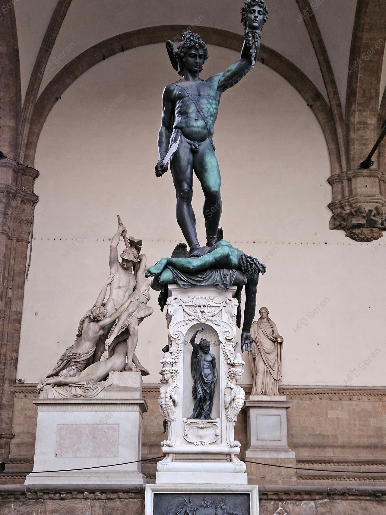 청동, 대리석 조각 작품들이 '무더기'로 있는데 그중 ‘메두사의 머리를 든 페르세우스’(Perseus with the Head of Medusa) 청동상이 압도적이었다. 초등학교 때 한창 유행했던 그리스 로마 신화에서 잊히지 않는 이야기 중 하나가 아테네의 도움을 받아 메두사를 잡는 페르세우스 이야기인데 당시 이탈리아 사람들도 마찬가지였나 보다.