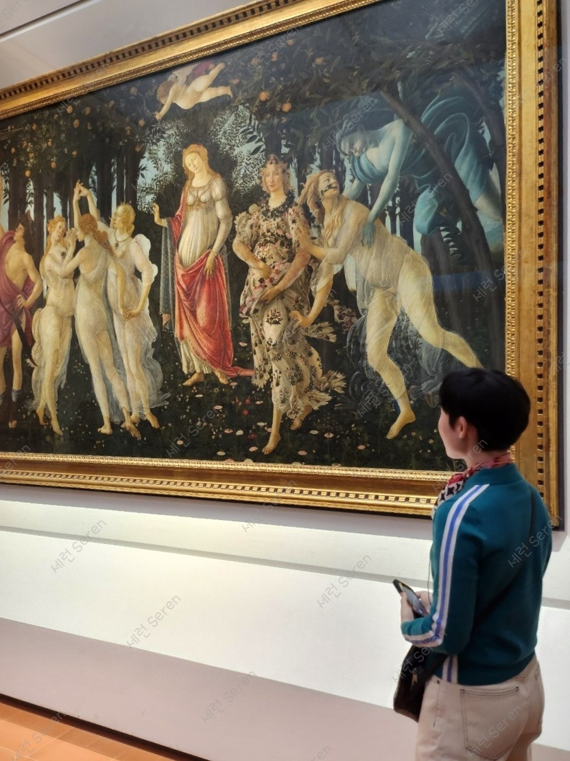 우피치 미술관에서 인기 많은 작품 중 하나인 산드로 보티첼리의 <봄>을 봤다. 책에서 봤던 작품이었는데, 벽 한 면을 차지하는 큰 그림이어서 신기했다.