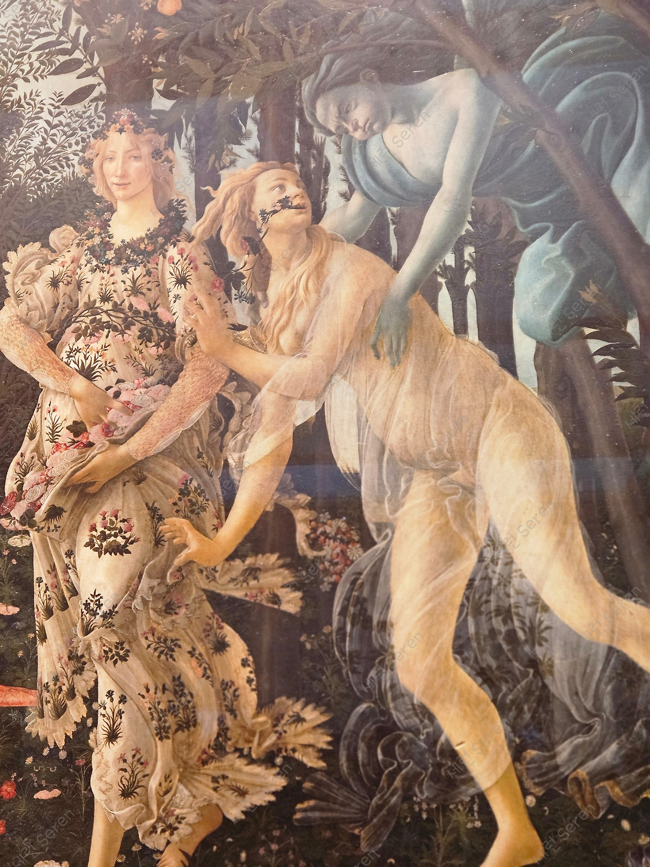 꼬마 유령 캐스퍼처럼 그려진 서풍의 신 제피로스가 시스루 같은 옷을 입고 있는 봄의 전령 '클로리스(Chloris)'를 꽃무늬 원피스 입고 꽃을 뿌리는 여신 '플로라(Flora)'로 변신시키는 장면이라고 했다. (클로리스의 입에서 이파리 같은 게 나오는 묘사도 하나의 증거다.)