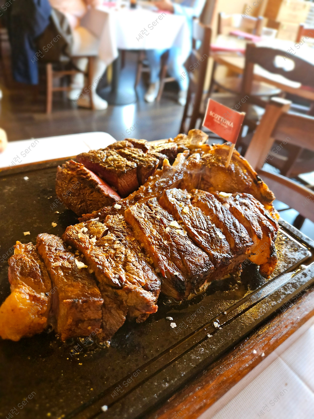 우리는 한국인들이 많이 가는 달오스떼(Trattoria Osteria Dall'Oste)의 한 지점을 방문했다. 샐러드 하나와 미디엄 레어로 익힌 T-bone 스테이크를 주문했다. 여자 둘이 먹기에 양이 많았다.