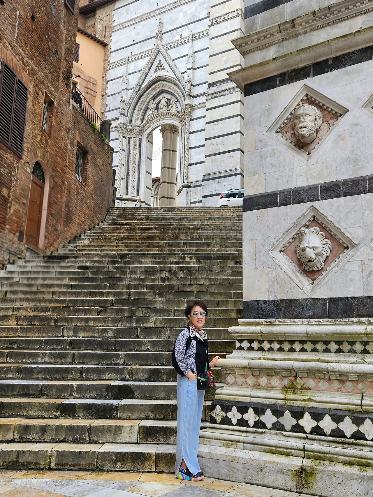 이어서 시에나 대성당(Duomo di Siena)으로 이동했다. 대성당으로 가는 계단 사이로, 붉은 벽돌 건물에서 하얀 대리석으로 바뀌게 된다.