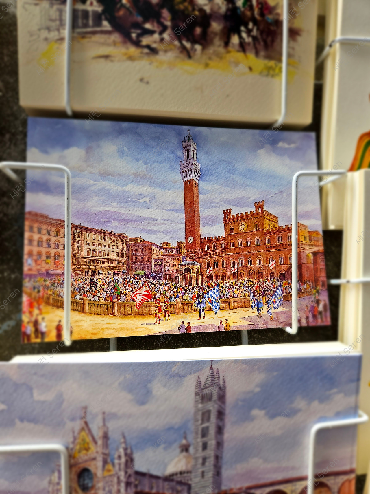 캄포 광장(Piazza del Campo)이 한눈에 내려다 보이는 골목에서 가이드님이 팔리오 경마(Palio di Siena)에 대해 설명해 주고, 실제 경기 영상도 보여주셨다. 팔리오 경마는 400년 넘게 이어지는 전통인데, 현재도 1년에 두 번, 캄포 광장 바닥에 흙을 깔고 한다. 10개 콘트라다(구역) 대표 말과 기수가 나와 광장을 3바퀴 먼저 돌면 승리하는 방식이다. 이때, 기수가 떨어져도 말이 먼저 들어오면 우승으로 인정한다. 경기 영상을 보니 기수를 버리고 달리는 말도 많았다.