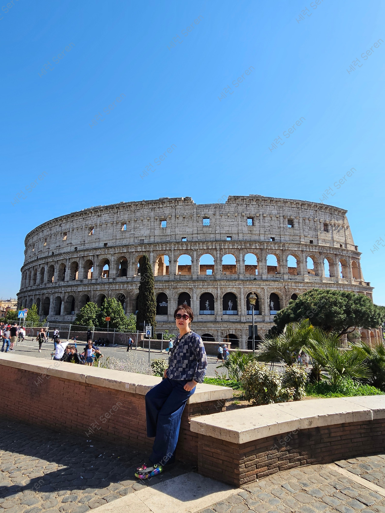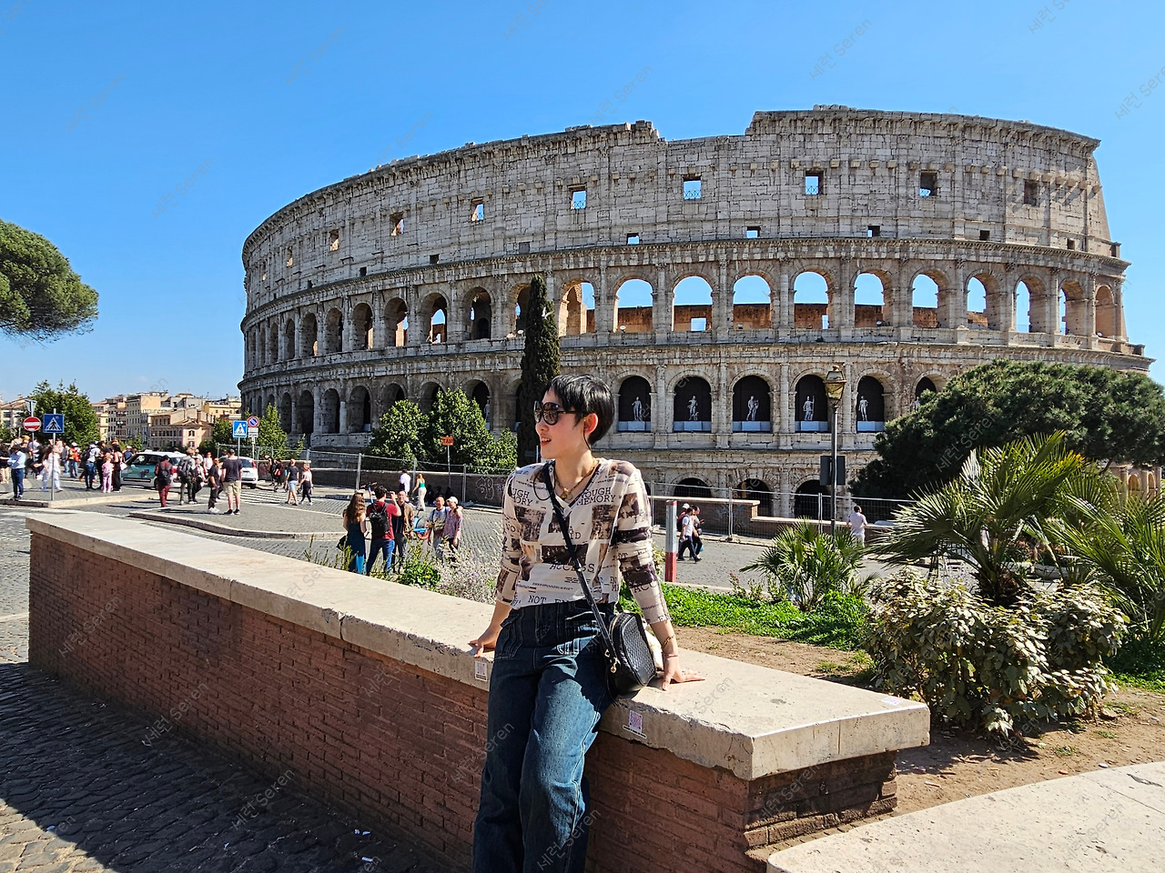 바티칸 시티를 벗어나 콜로세움으로 향했다. 전날 야경 도보 투어 때 봤지만, 낮에 다시 가서 보고 싶었다. 역시 다시 봐도 좋았다. 가이드님이 알려주신 포토 스팟에서 우리 둘이 번갈아 가며 인생 사진을 찍었다. 아침에는 정말 추웠는데, 한낮의 로마는 더웠다.
