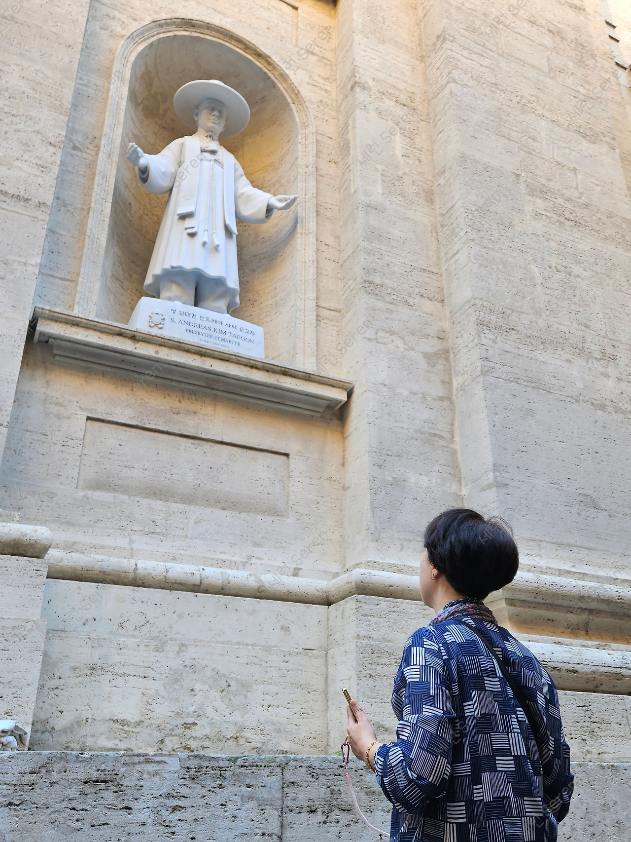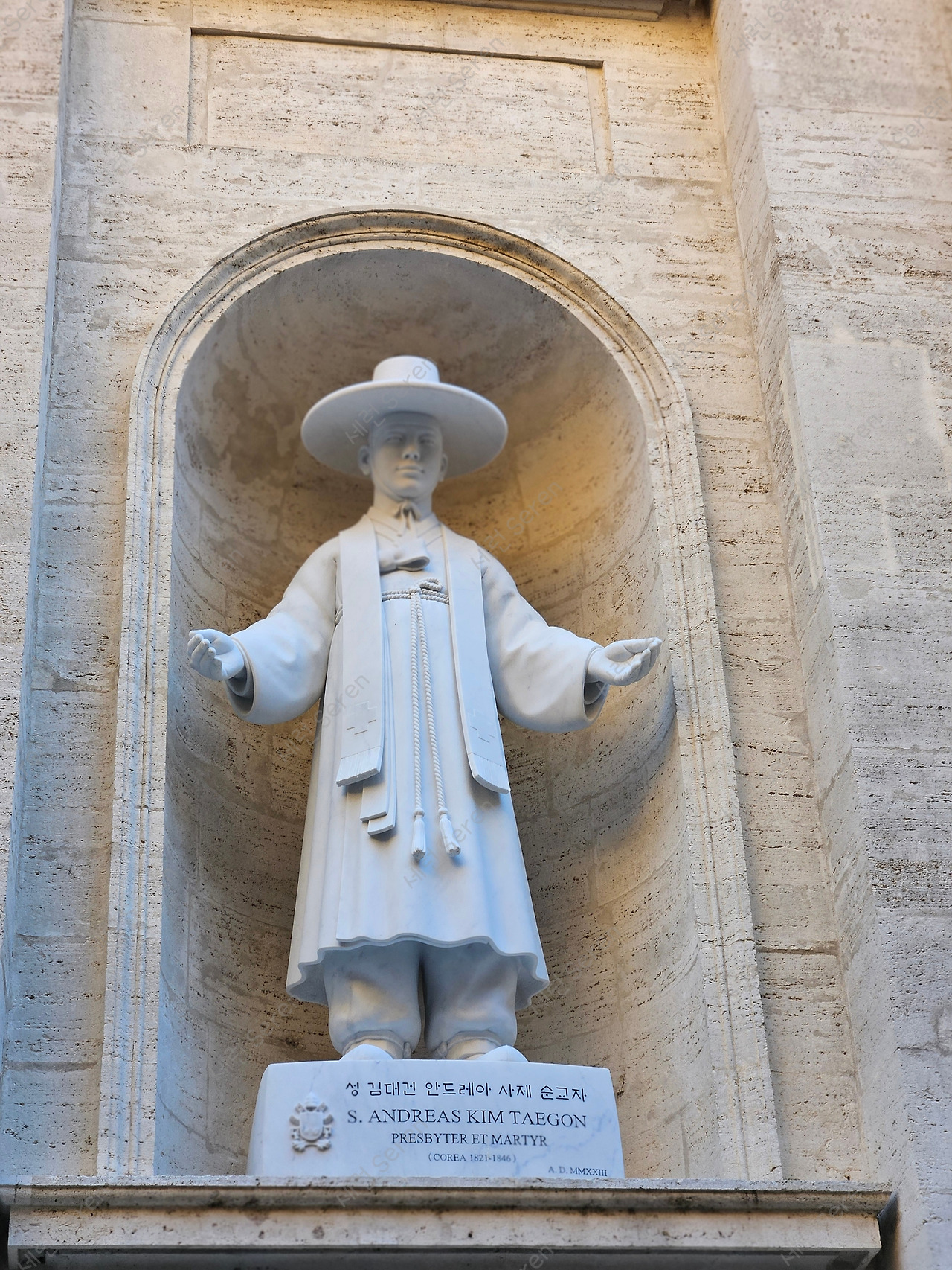 성 베드로 대성당 외벽에는 성인들의 동상이 있다. 이곳에 한국 최초의 가톨릭 사제이자 순교자인 김대건 신부님의 동상이 2013년에 세워졌다. 2019년에 왔을 때는 몰라서 못 보고 갔는데, 이번에는 꼭 방문해야겠다고 생각했다.