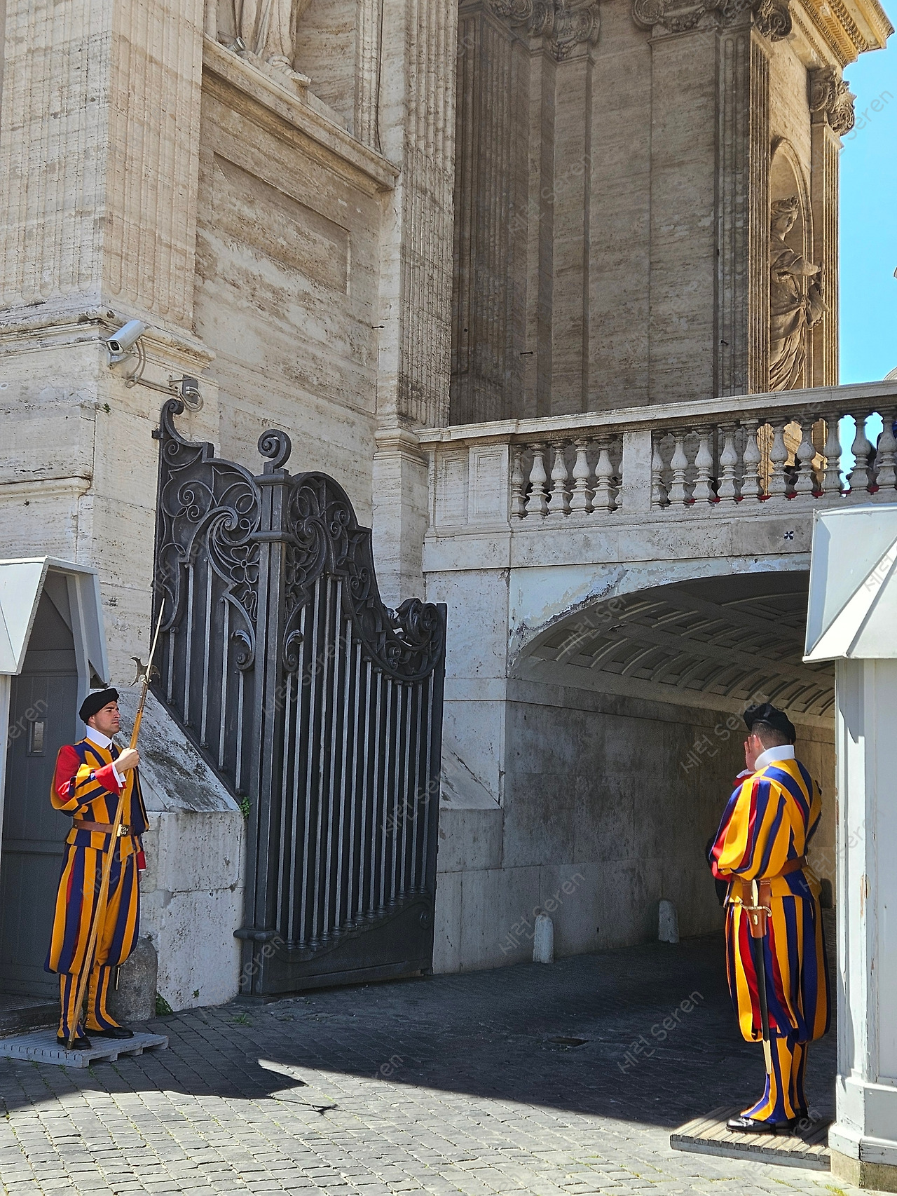 나오는 길에 원색의 노랑·빨강·파랑 줄무늬 의상으로 시선 강탈하는 교황청 스위스 근위대가 보였다.