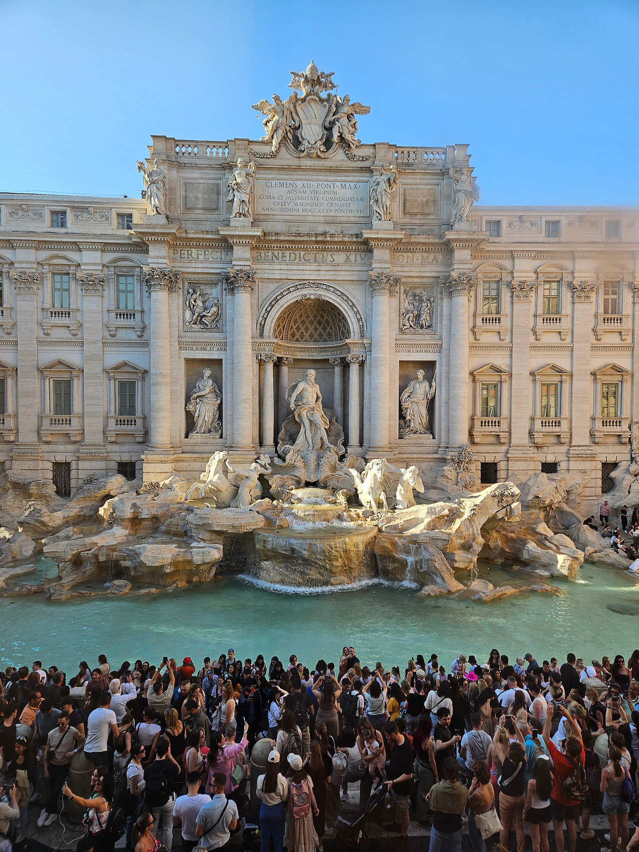 전날 가이드님의 팁 덕분에 트레비 분수 맞은 편의 베네통 옷가게 2층으로 갔다. (살짝 민망해서 옷 구경하는 척도 하면서!) 우리말고도 여러 외국인이 2층 창가에 붙어 트레비 분수 전경을 찍고 있었다. 기다렸다가 찍었는데 분수 바로 앞에서 보는 것과 또 다른 느낌이었다. 그리고 앞에 발 디딜 틈 없이 몰려있는 관광객들 역시 절경이었다.
