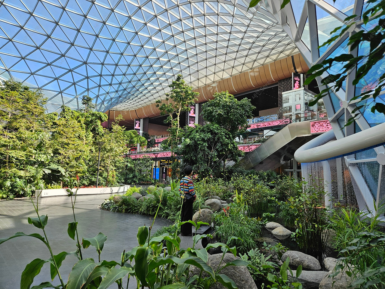 한편 처음에는 얼마나 지연될지 안 알려줘서 불안했는데, 다행히 출발 시간이 뜨긴 했다. 덕분에 한숨 돌렸다. 게이트에서 기다리고 있는데 항공사에서 보상 의미로 식사 쿠폰을 제공했다. 덕분에 모노레일이 다니는 쇼핑몰 쪽으로 가 온실 정원 구경도 했다.