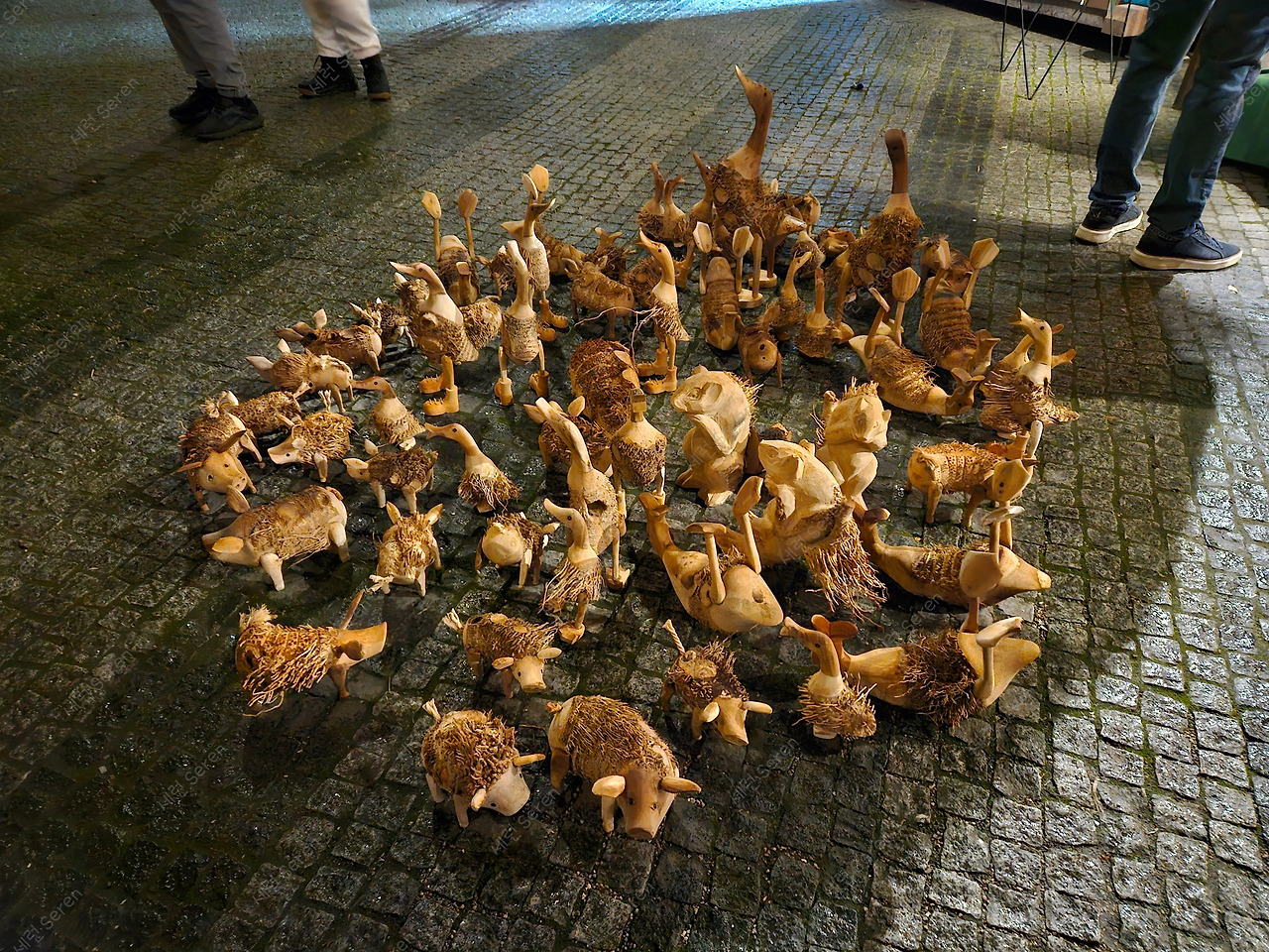 배를 채우니 덜 추운 거 같았다. 셋이 잘 붙어 다니며 마켓 부스마다 진열하느라 고생했을 거 같은 크리스마스 소품 구경을 했다. 한 목공예 부스는 그냥 사람들 지나다니는 길에다 갖가지 동물 조각품을 집합시켜놓았다. 어린애들이 뛰어다니다 다 부수면 어떡하나 싶은 장면이었다. (물론 부수더라도 혼내지 않을 거 같다!)