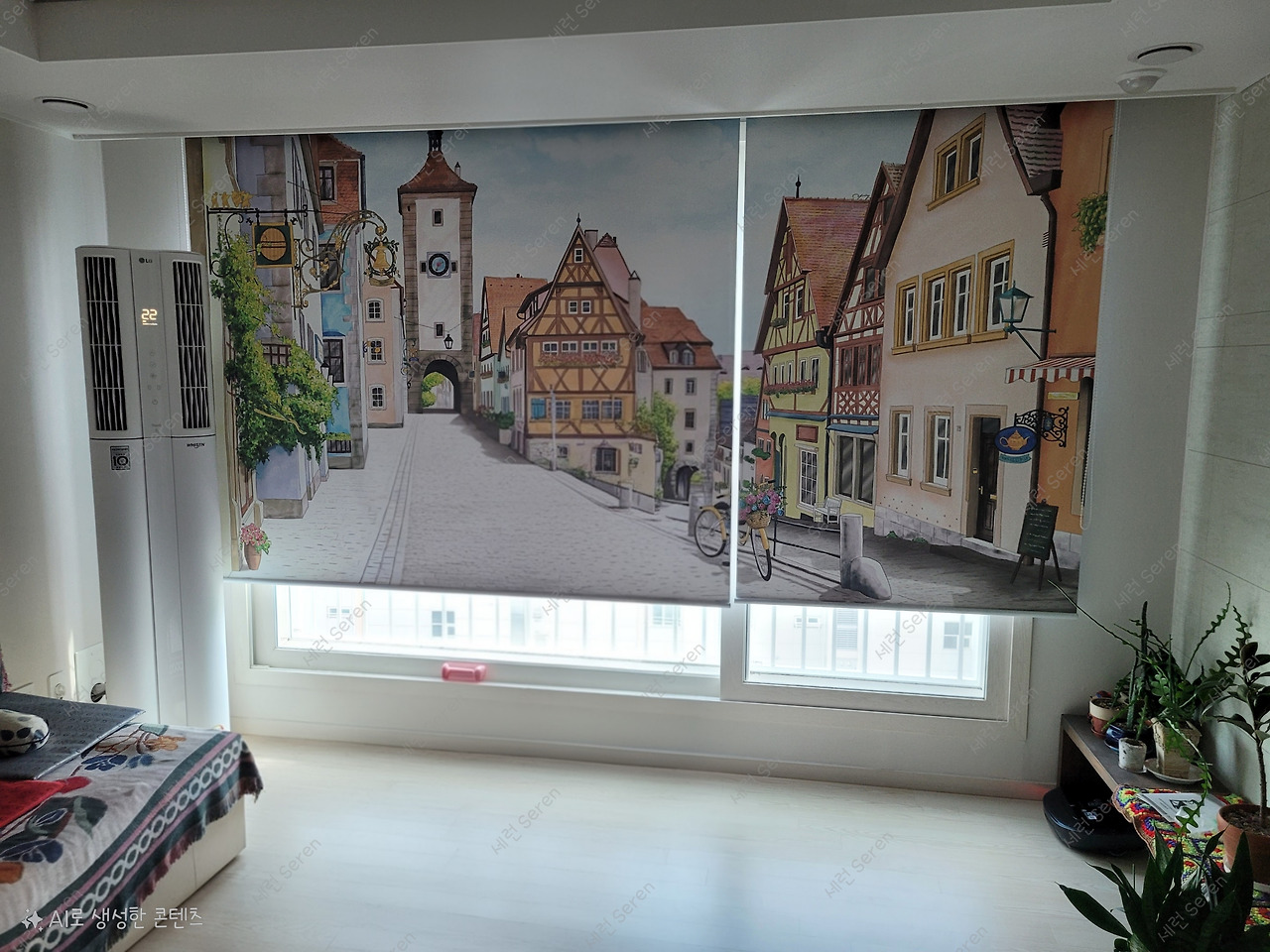 결과적으로 아주 안전하게 잘 놀고 왔다. (덕분에 해외여행을 떠나는데 자신감이 생겼다.) 독일 내에서 마음껏 기차를 탈 수 있는 유레일 패스를 끊어 거의 매일 도시를 이동하며 꽤 많은 곳을 다녔다. 그중 가장 인상 깊었던 도시가 로텐부르크 옵 데어 타우버(Rothenburg ob der Tauber), 이른바 로텐부르크였다. 그래서 거실에 로텐부르크 풍경이 그려진 블라인드를 설치했다. 그리고 언젠가 엄마 아빠에게도 꼭 이곳을 보여주리라 다짐했다.