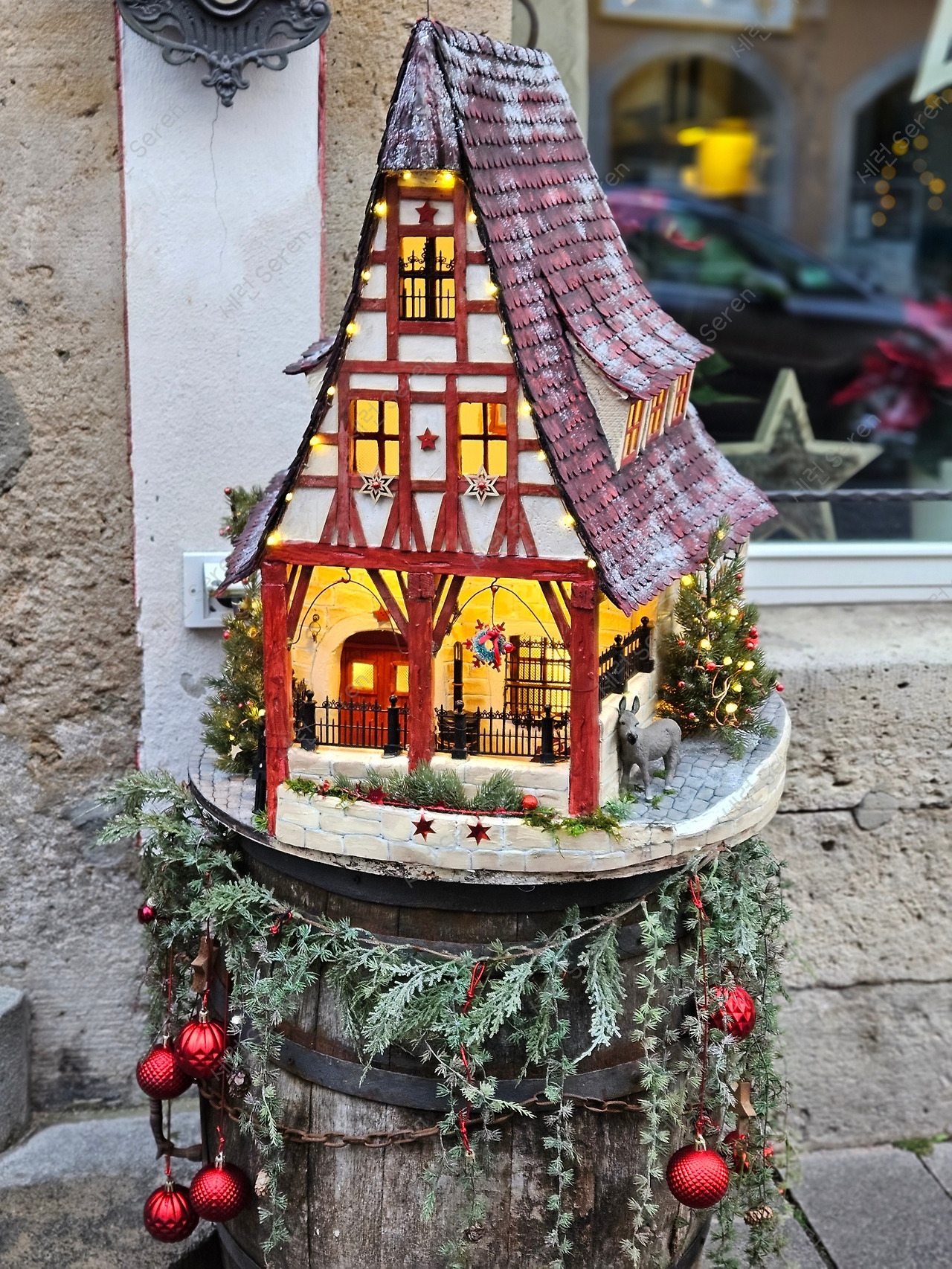 우리는 카테 볼파르트(Käthe Wohlfahrt)로 갔다. 이 매장은 여러 곳에 지점이 있는데 로텐부르크 매장이 본점이자 가장 큰 규모라고 한다. 1년 내내 온갖 종류의 크리스마스 소품을 판매하고, 내부는 마치 크리스마스 테마파크처럼 꾸며져 있다. (참고로 내부에서 사진 촬영 금지!) 크리스마스 시즌이라 5년 전에 왔을 때보다 더 화려한 느낌이었다.