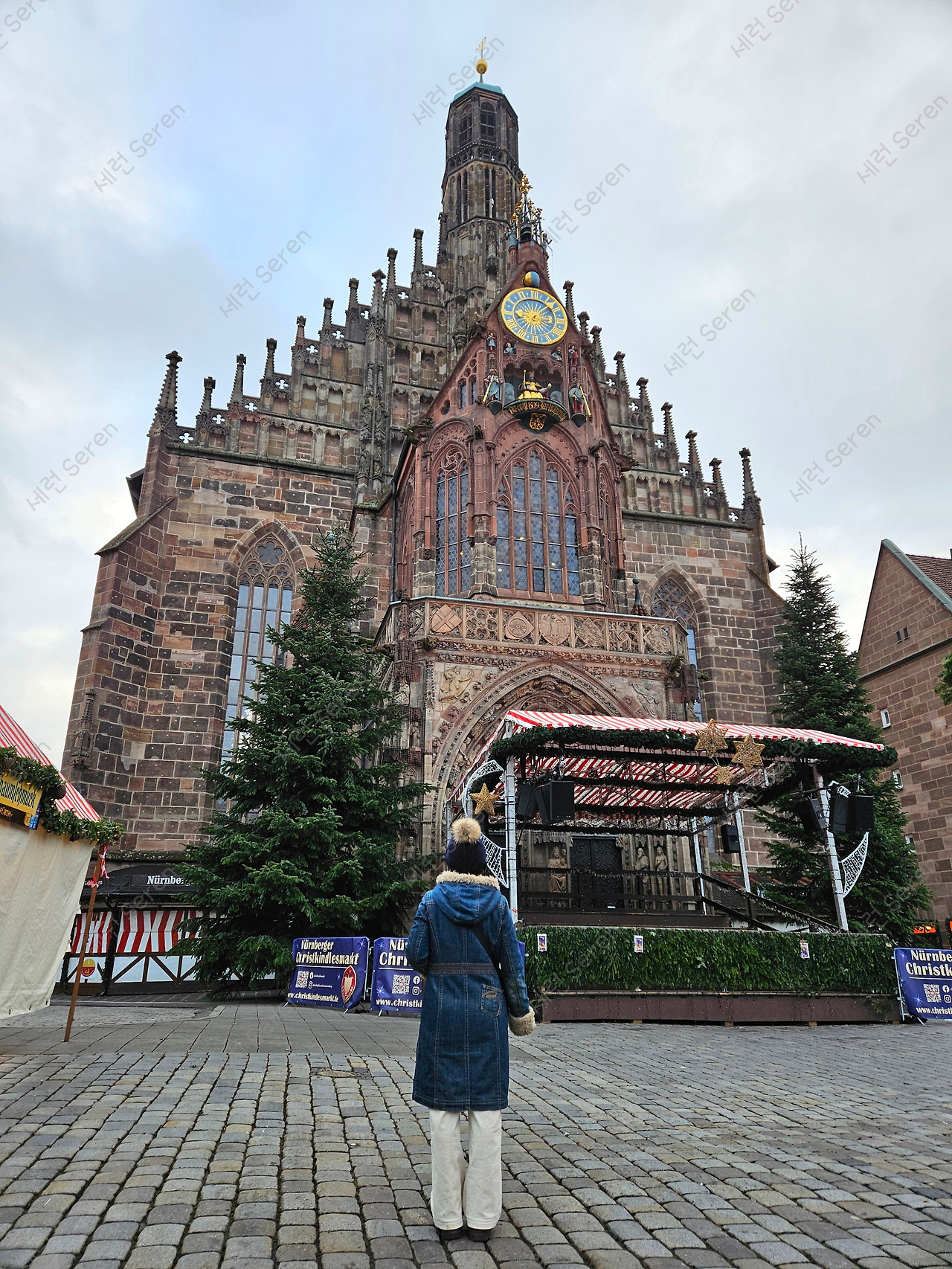뉘른베르크 시내를 동서로 가로지르는 페그니츠 강(Pegnitz) 건너는 다리가 여러 개 있다. 대표적인 다리로 박물관 다리(Museumsbrücke)를 건너 성모성당(Frauenkirche)으로 갔다. 이브 전날까지 북적이던 광장이 조용했다. 성모성당은 엄청 커서 한 화면에 담기 어려웠다. 마찬가지로 아름다운 분수(Schöner Brunnen)라 불리는 첨탑 형태 분수도 컸다. 전신을 다 넣고 찍기 위해 피사체에서 한참 떨어져야 했다. 그래서 아빠는 계속 '참말로'라 했다. 해석하면 '어쩜 이렇게 크게도 짓냐'는 감탄사인 거 같다.