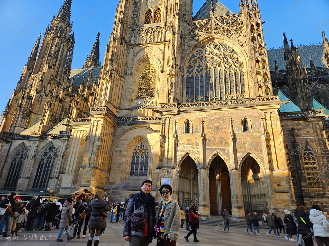우리는 체크인 후 곧장 프라하성으로 갔다. 숙소를 나와 전차를 탔다. 프라하성은 세계에서 가장 큰 고성(古城) 중 하나로 기네스북에도 올랐다고 한다. 성 비투스 대성당(Katedrála sv. Víta) 앞에 크리스마스라 트리가 설치되어 있었다. 성탄 미사가 있는지 사람들이 많았다.