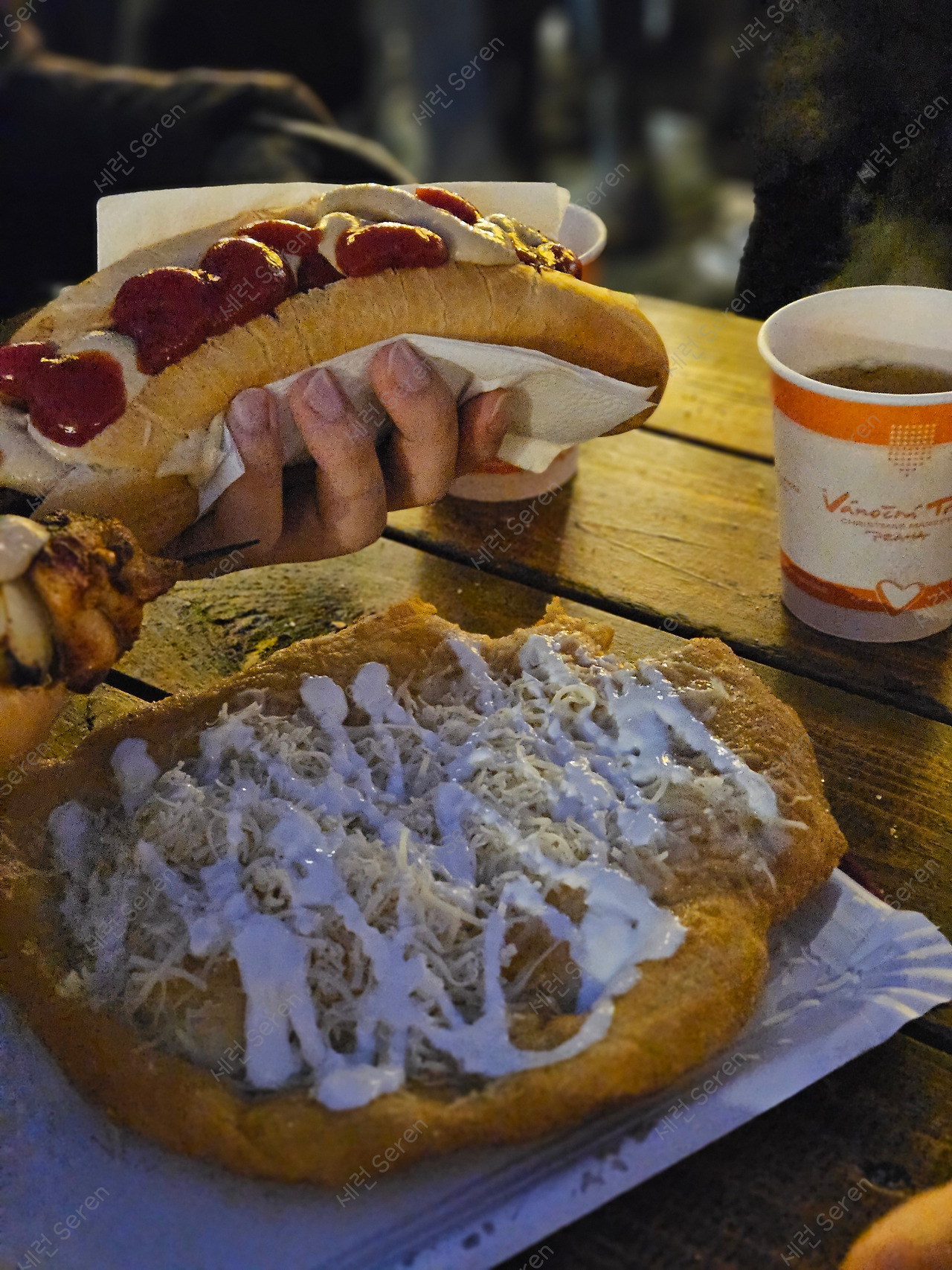 5시가 안 된 시간이었는데 해가 졌다. 저녁 겸 마켓에서 군것질을 시작했다. 야경 도보투어를 신청한 우리는 숙소에 들어가 따뜻하게 챙겨 입고 나오기로 했다.