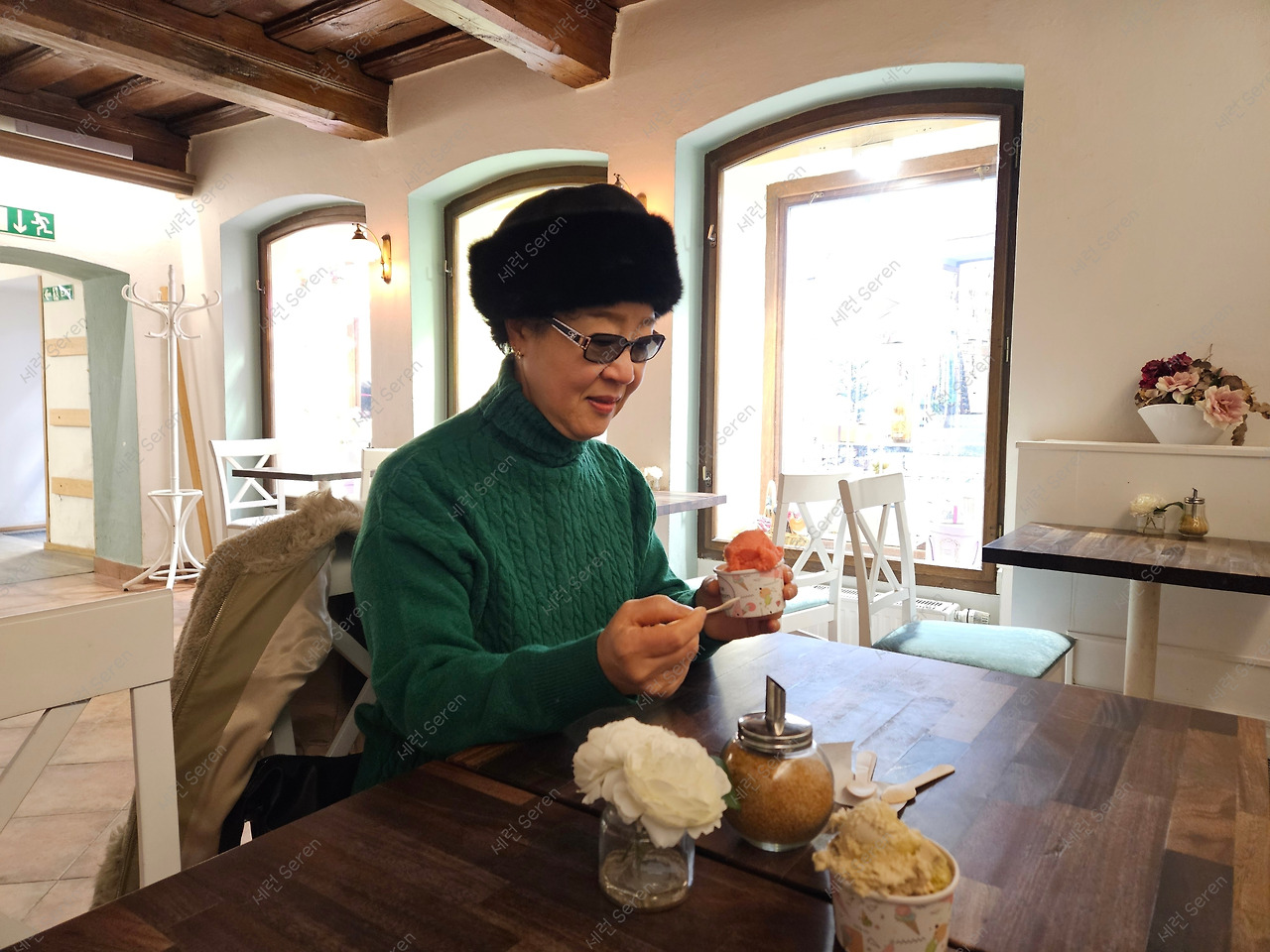 성을 구경하고 내려왔다. 젤라또 가게가 보여 들어갔다. 따뜻한 실내에서 젤라또를 먹으니 기분이 좋아졌다. 한편 원래 예약한 16시 버스 시간을 12시대로 바꿨다. 다음날 떠날 준비도 하고, 프라하에서 느긋하게 저녁을 즐기는 게 좋을 거 같았기 때문이다. 여하간 수수료는 발생했지만 현명한 선택이었다. 짧은 시간이었지만 만족스럽게 체스키 크룸로프를 여행하고 우리는 프라하행 버스에 올랐다.