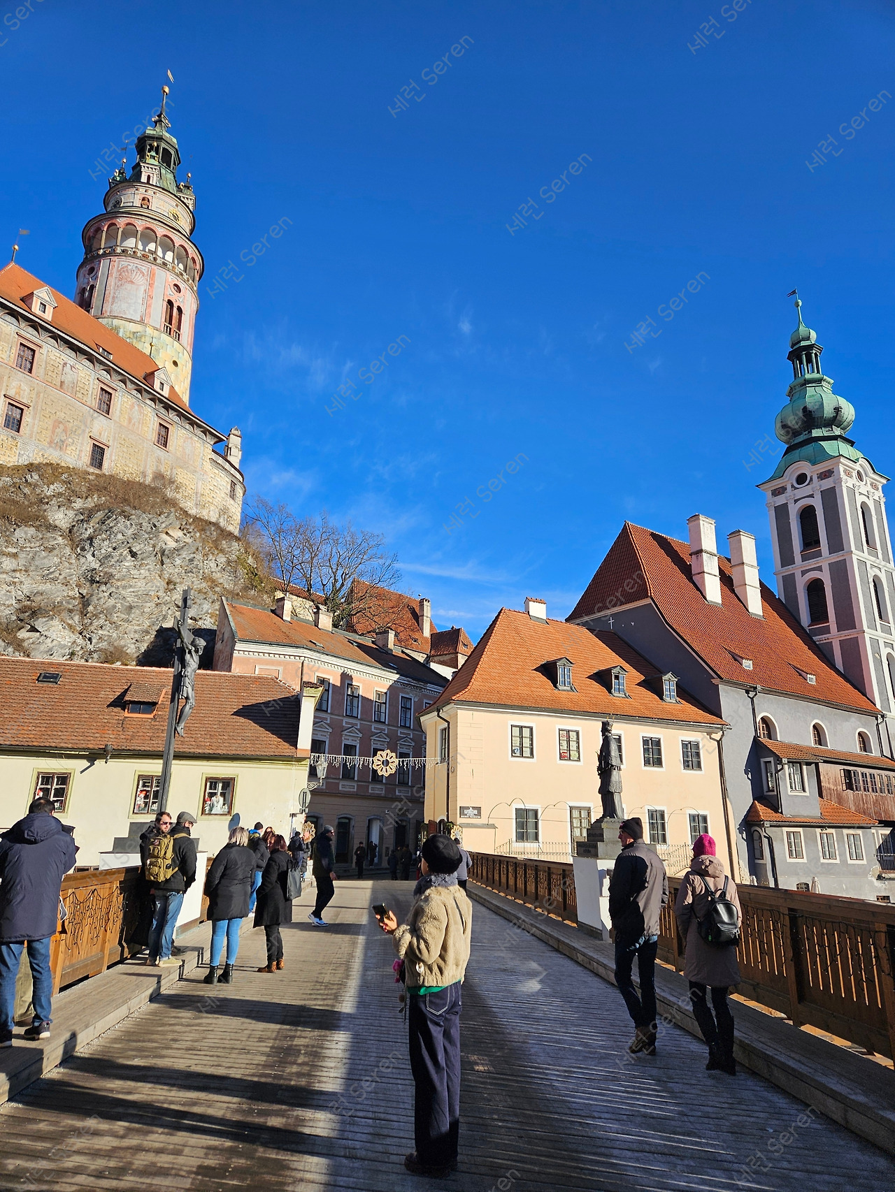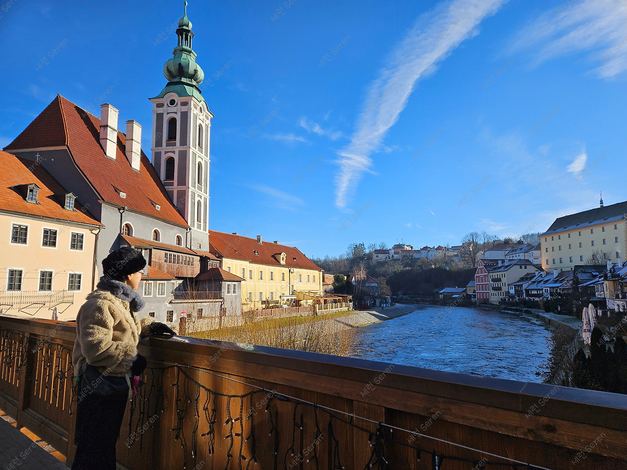 골목 구경을 하며 어디서든 보이는 성탑을 향해 걸었다. 마침내 블타바 강을 건너 구시가지와 체스키 크룸로프 성을 잇는 목조다리 라제브니츠키 다리(Lazebnický most)가 나왔다. 이 다리에 서면 체스키 크룸로프의 파스텔톤 성탑과 성 요스트 교회(St. Jost Church)의 탑이 양쪽에 자리 잡고 있어 멋있는 사진을 찍을 수 있다.