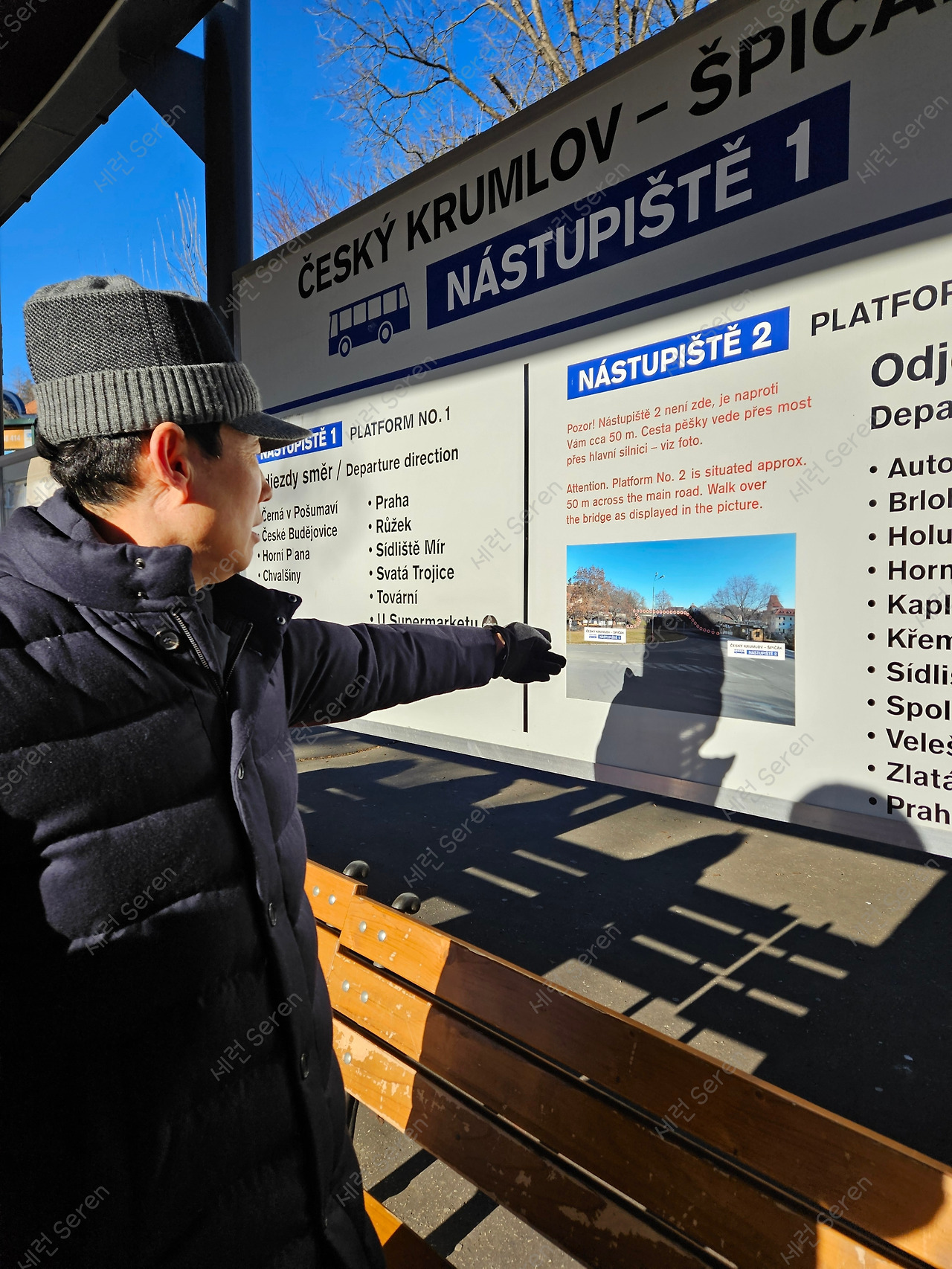 우리는 아침 7시 버스를 타기 위해 나섰다. 여유 있게 나왔는데 하필 프라하 중앙 정류장(Prague Main Bus Terminal)이 공사 중이라 구글 지도가 알려주는 방향으로 갈 수 없었다. 어두워서 잘 보이지도 않고, 물어볼 사람도 없어 당황스러웠다. 그냥 잔디밭 같은 공터를 가로질러 아슬아슬하게 도착할 수 있었다. 버스를 타고 2시간 반 정도를 달려 체스키 크룸로프에 도착했다.