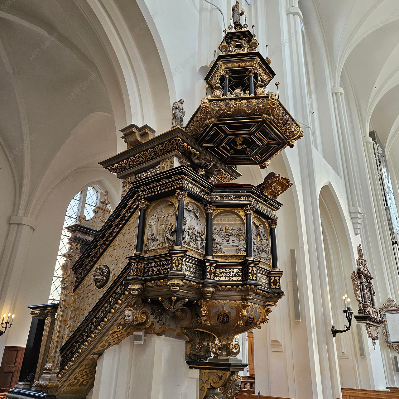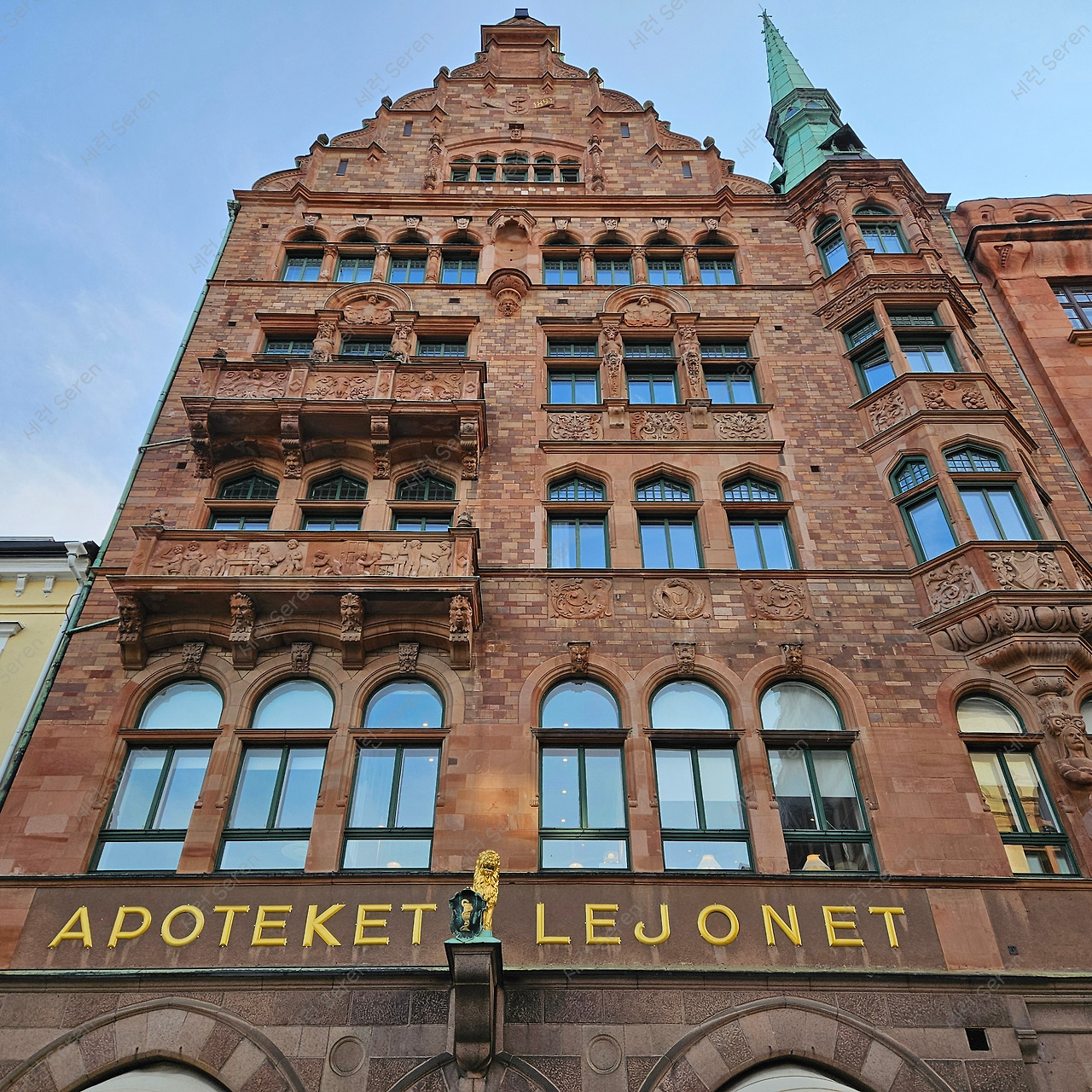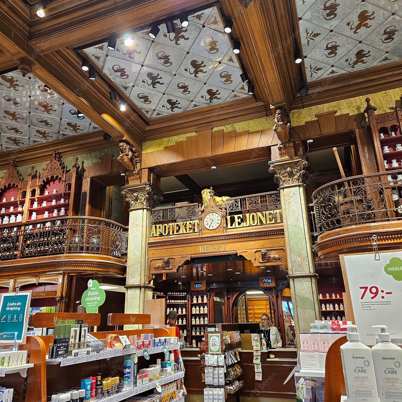 이어서 말뫼에서 가장 오래된 약국인 Apoteket Lejonet(아포테케트 레요넷, ‘사자의 약국’)을 갔다. 이름처럼 간판 쓰인 곳에 사자 동상이 있다. 실내는 방금 전에 본 교회보다 화려하고 압도적인 느낌을 받았다.