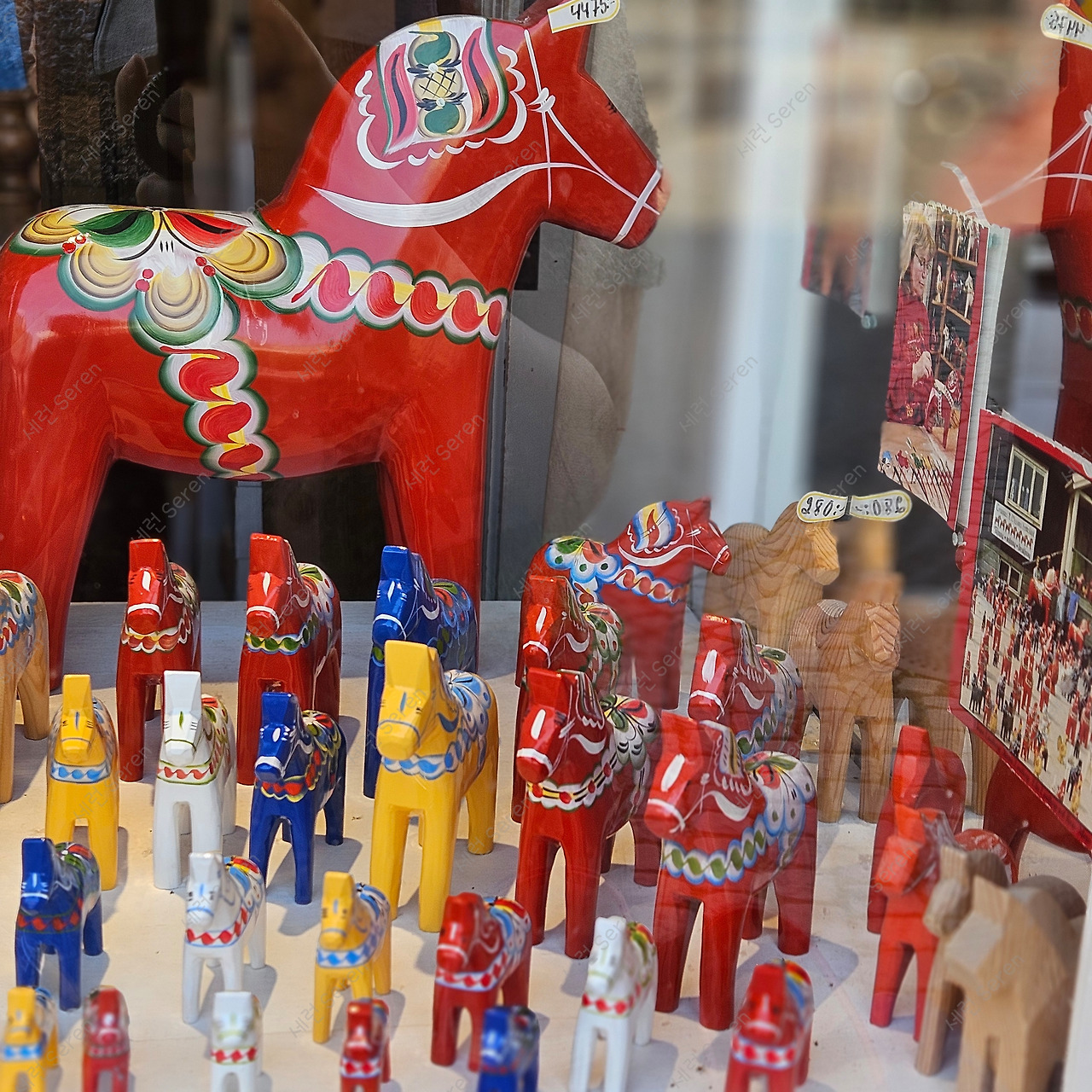 기차역 기념품 코너에서 본 빨간 말의 정체를 알게 되었다. 달라헤스트(Dalahäst)라는 스웨덴의 대표적인 상징물이었다. 가이드님이 이 말이 행운, 복을 상징해서 집들이 선물로도 쓰인다고 했다. (한국의 난 화분이나 휴지 같은 의미랄까!) 마침 릴라 토르그에 수공예 가게가 보여 엄마에게 줄 티 코스터를 샀다. 일대일 투어지만 자유시간도 주셨다.