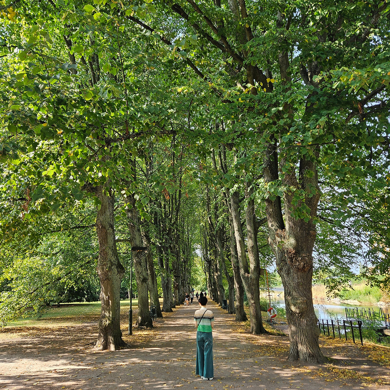 도서관을 나와 공원을 걸었다. 공원에도 바닷물이 강, 호수처럼 흐른다. 가이드님이 담수 유입이 많아 염분기가 적고 짠 냄새가 나지 않는다고 설명해 주셨다. 울창한 나무들이 쭉 뻗은 길에 들어섰다. 가이드님이 센스 있게 사진을 찍어주셨다. (웨딩사진 스팟으로 유명하다고 했다.)