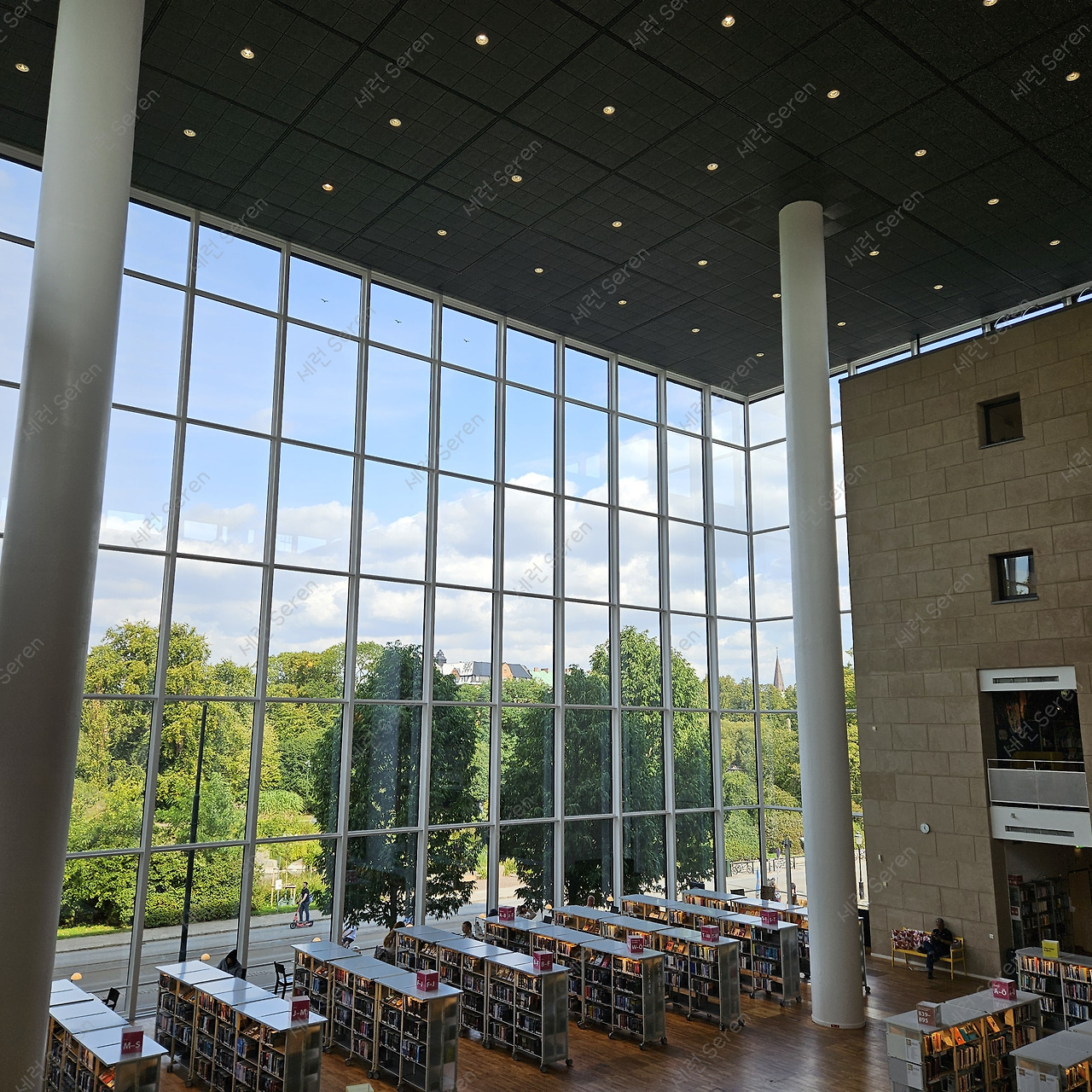 숲에 둘러싸인 듯한 도서관에 왔다. 독서도 좋지만 조용해서 명상하러 와도 좋을 거 같았다. 구관과 신관이 자연스럽게 이어져 있는데 신관은 자연광으로 밝고, 층고를 높여 확 트인 공간 배치가 마음에 들었다.