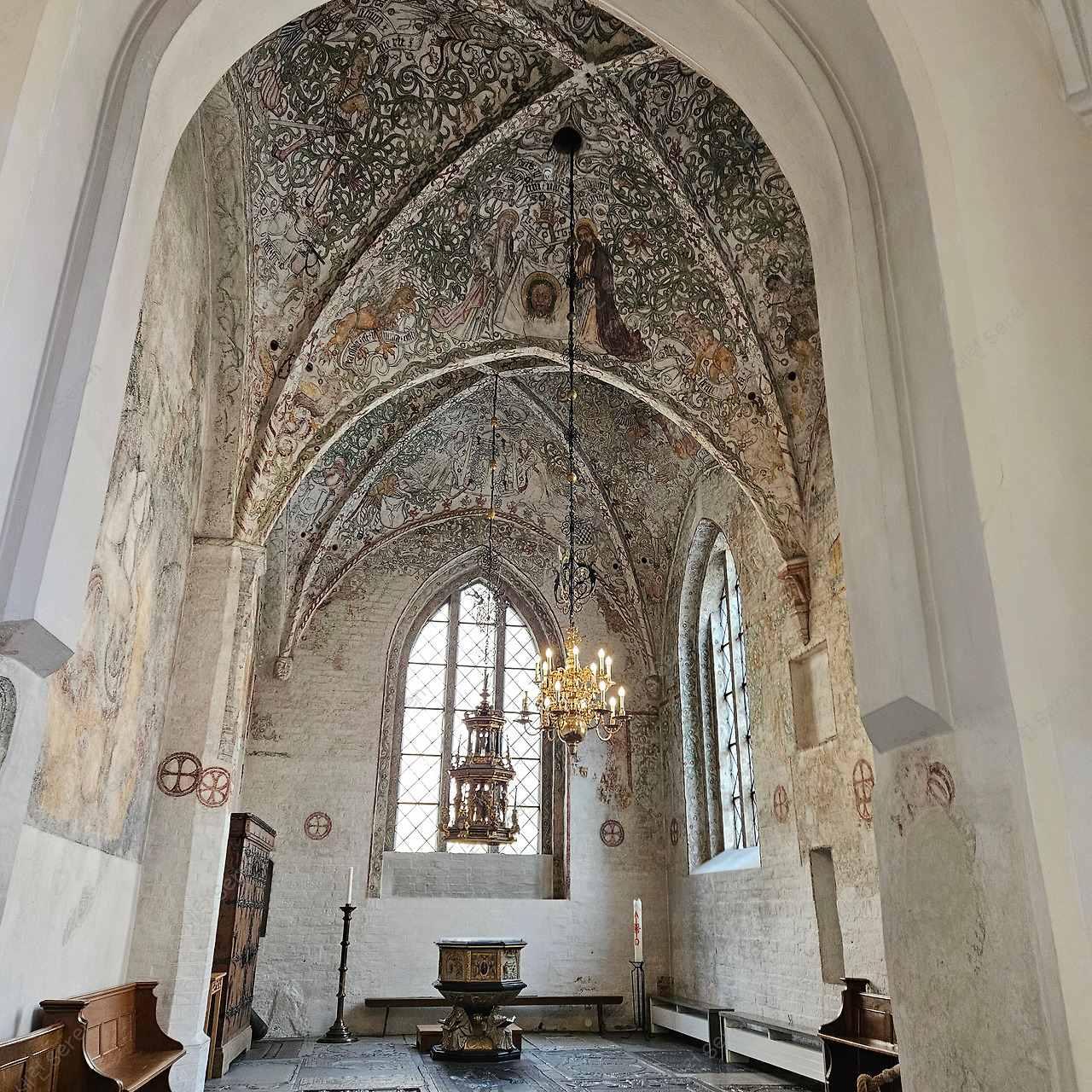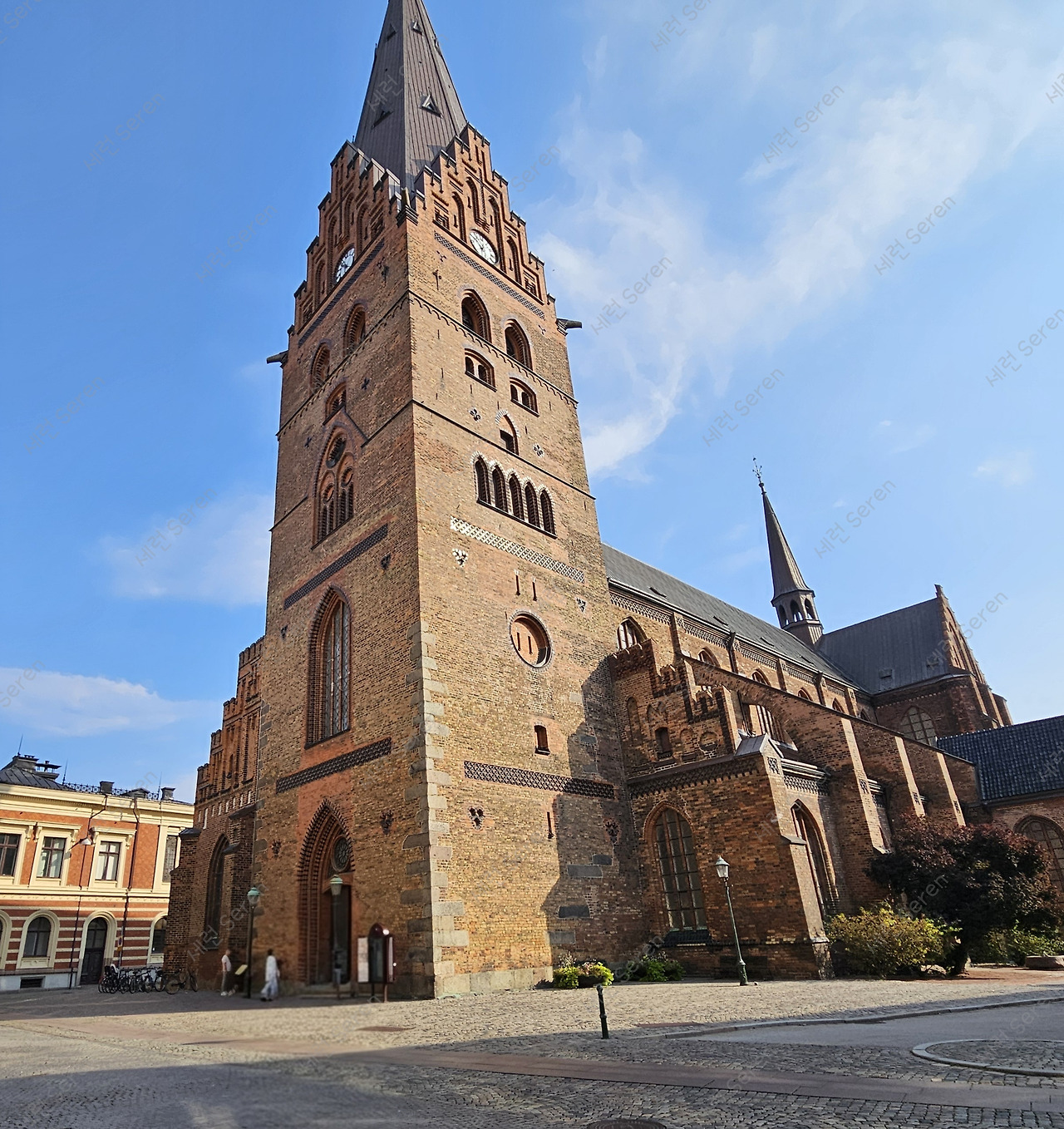 다음으로 성 피터 교회(St. Peter's Church)에 도착했다. 어마어마하게 크고 붉은 벽돌에서 힘이 느껴지는 웅장한 교회였는데 내부는 아이보리 톤의 웨딩드레스를 연상시켰다. 실내가 화려하진 않지만 우아하게 느껴졌다. 한쪽에 양 인형이 천장을 쳐다보고 있는 게 귀여웠다. 한편 이 교회 외관을 보면 회색 돌들이 보인다. 이건 바이킹 시대 룬스톤(룬문자 새긴 기념비)을 건축 자재로 활용했기 때문이라고 한다. (당시에는 룬스톤이 너무 흔해서 보존 가치가 없었나 보다!)
