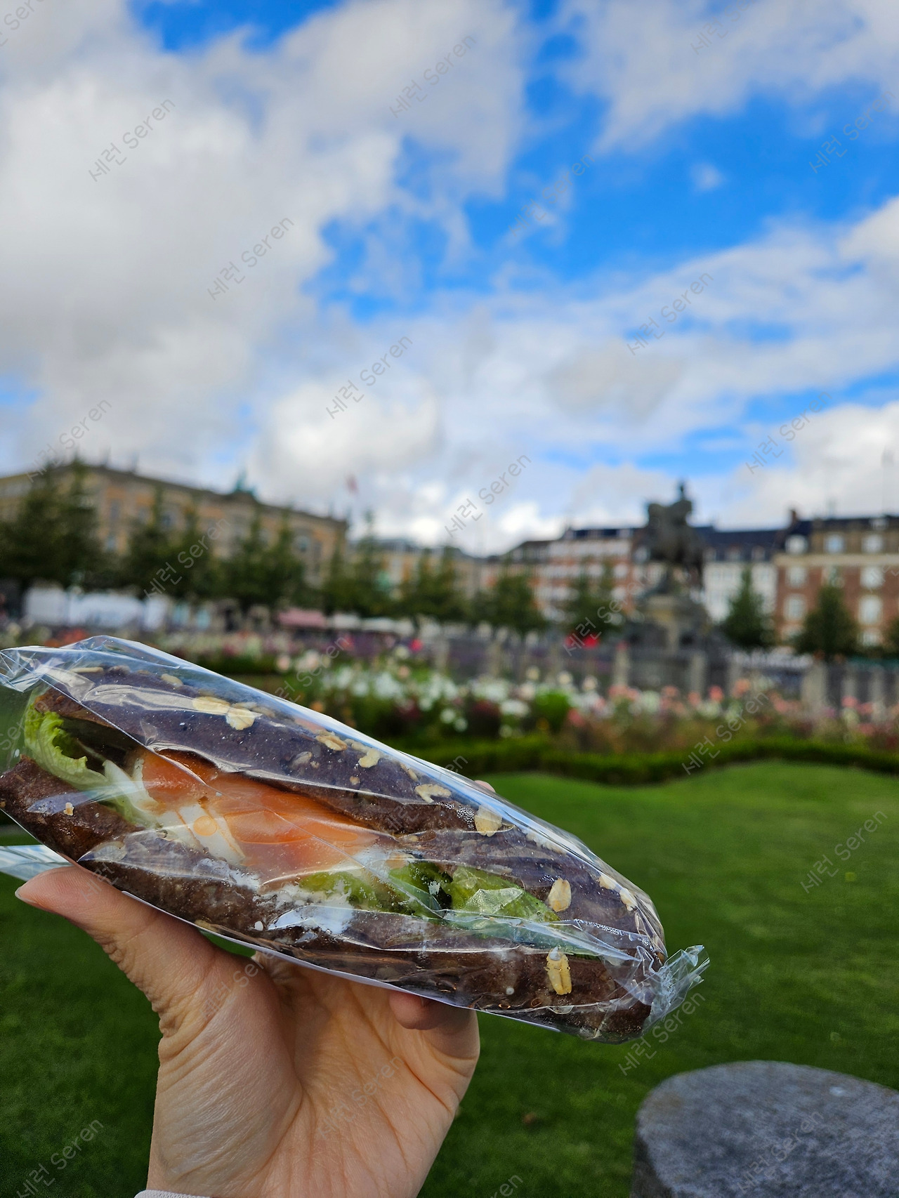 시간이 지날수록 오전에 퍼부었던 비바람이 믿기지 않게 맑아졌다. 그 덕에 따스한 햇빛을 받으며 Kongens Nytorv에서 연어 샌드위치를 먹었다. 나처럼 이곳 벤치에 앉아 광합성하며 점심을 즐기는 사람들이 많았다.