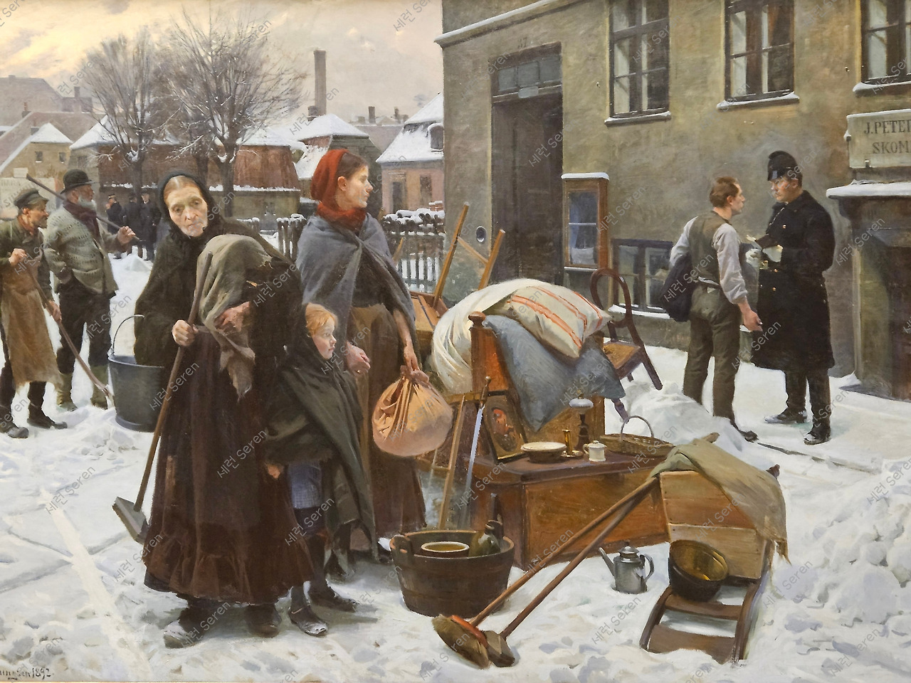 덴마크 황금기 또는 19세기 북유럽 사실주의 회화의 특징 중 하나가 바로 평범한 민중의 삶과 감정을 포착하는 것이라고 한다. 그래서 실 감는 일을 잠시 멈추고 습기로 뿌옇게 된 창문에 누군가의 이름을 쓰는 여인이나, 엄동설한에 집기들과 함께 길거리에 내앉게 된 가족들의 삶을 그린 그림이 인상적이었다.
