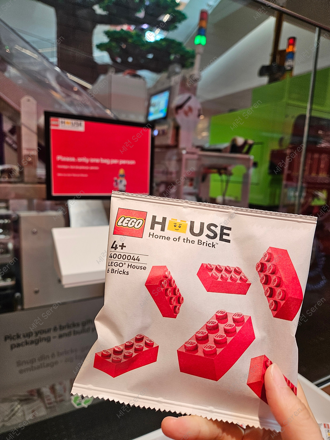 입장 마감 전에 할인해 주는 Late arrival ticket(209kr)을 미리 예매하고 가려했으나 타이밍을 놓쳐 모두 sold out 되었다. 마침 비도 그쳐서 일단 가보기로 했다. 직원에게 레고하우스를 간다고 했더니, 손등에 재입장 가능하다는 표시의 도장을 찍어 주었다. 30분 가까이 걸어 레고하우스에 도착했는데 현장에서 운 좋게 Late arrival ticket 예매가 가능했다. 먼저 6조각으로 랜덤 하게 만들어주는 나만의 레고와 내 이름이 출력된 카드를 수령하고 기프트 레고를 받았다.