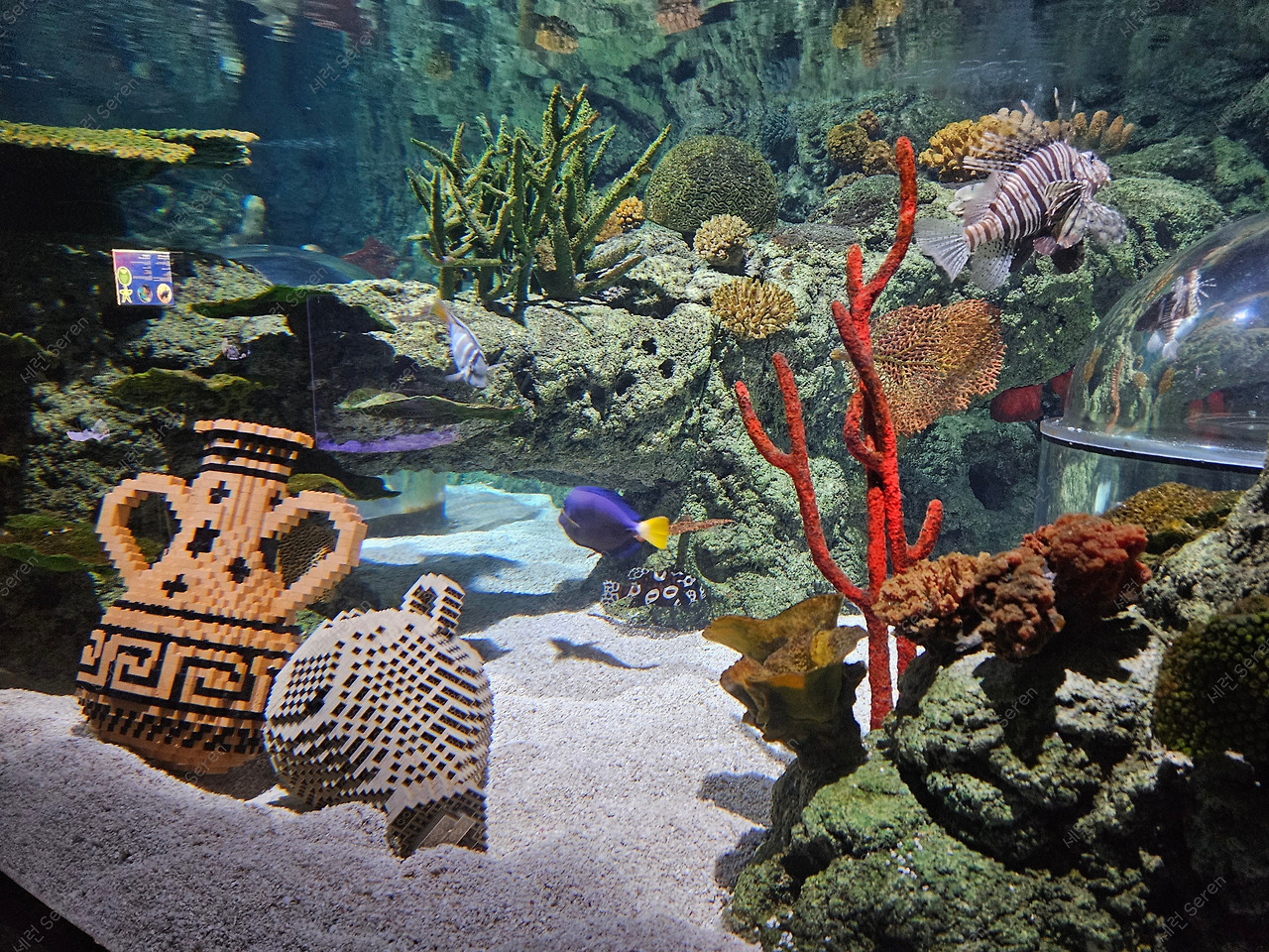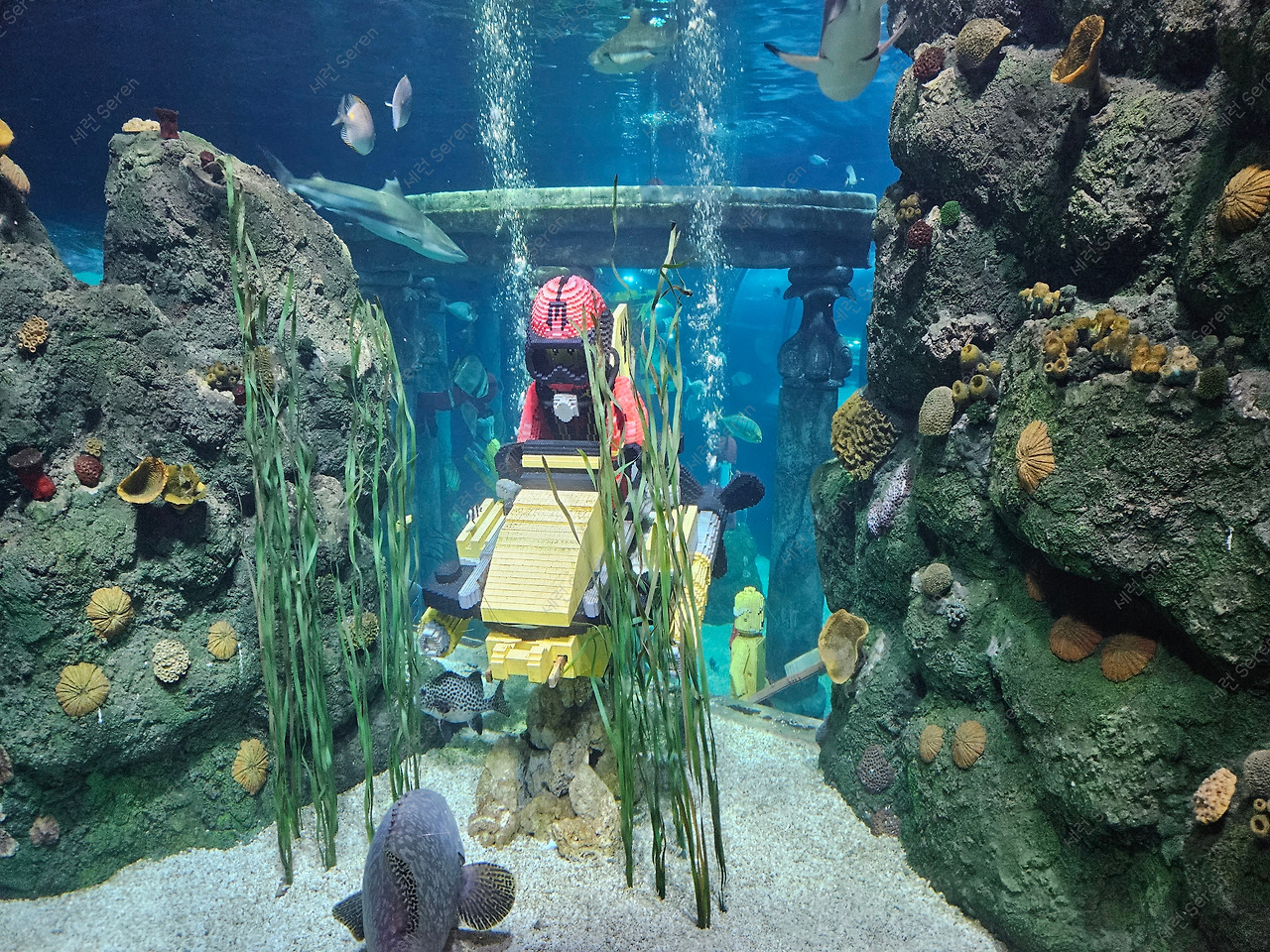 10시 오픈 시간에는 문을 여는 체험 공간과 놀이기구가 별로 없었다. 다행히 미니어처 랜드 가까이에 아틀란티스 체험 공간이 있어 구경했다. 들어가서 레고 애니메이션을 감상한 뒤 해저 공간처럼 꾸며 놓은 수족관을 관람하는 거였다. 중간중간 버튼을 누르면 레고에서 거품도 나오는데 유치하지만 동심으로 돌아가 즐겼다.