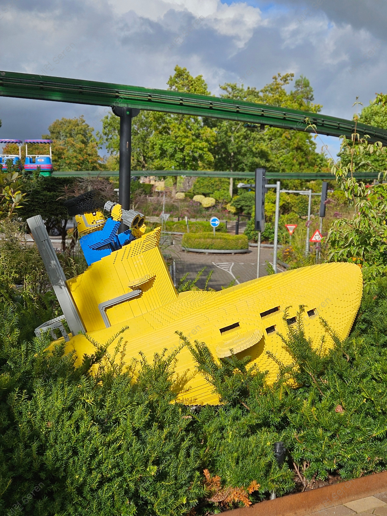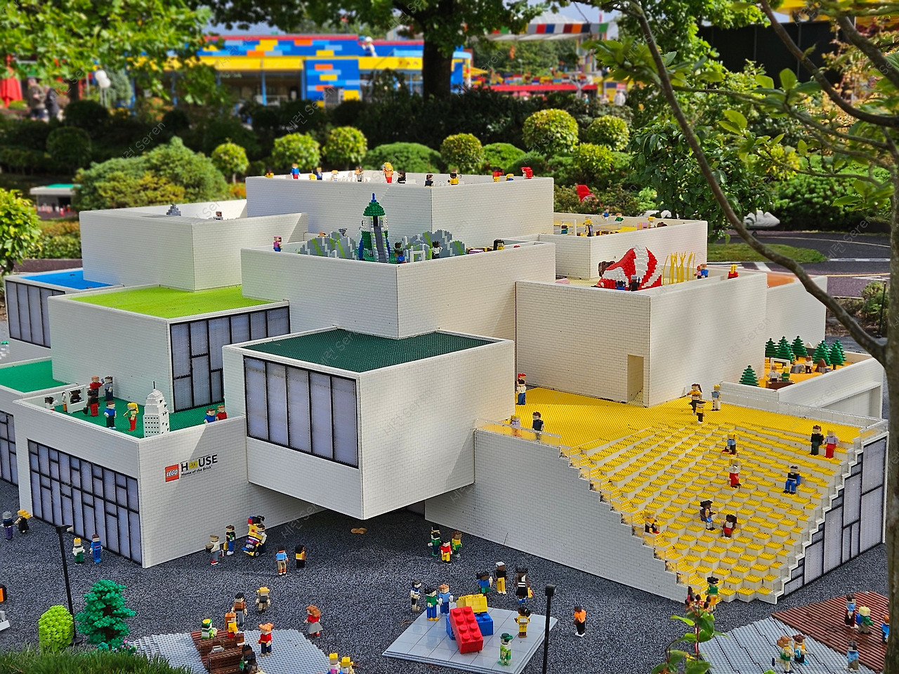 미니어처 랜드를 나와 놀이기구가 있는 곳들을 돌면서도 레고를 구경했다. 일반적으로 놀이기구 테마에 맞춘 레고 전시를 하고 있었다. 꽤 큰 공간을 마구 돌아다니다 보니 1시간 가까이 지났다. 그리고 이때부터 비가 쏟아지기 시작했다. 바람도 강하게 불어 도저히 돌아다닐 수 없는 상황이라 카페로 피신했다. 카페에 콘센트가 있어 폰 충전을 하고, 따뜻한 홍차를 마시며 창문 밖 풍경을 구경했다. 비가 안 왔으면 좋았겠지만, 그래도 구경할 만큼 다 하고 비가 와서 역시나 '최악은 피했다'는 생각을 했다. 한편, 레고랜드 안에 레고하우스도 있는 줄 알았는데 아니고, 표도 따로 구매해야 하는 걸 뒤늦게 깨달았다.