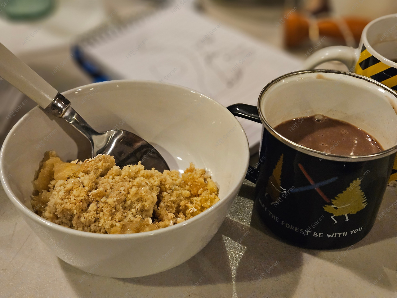 애플 크럼블(apple crumble)은 영국인에게 단순한 디저트 그 이상인 ‘소울푸드(soul food)’ 같은 존재라고 한다. 사과 수확철인 9~10월 이후부터 본격적으로 먹는데 겨울까지 따뜻한 디저트로 즐긴다고 한다. 우리가 만든 애플 크럼블을 소분해서 한 접시씩 나눠 받았다. 한 입 먹자마자 너무 맛있었다. 한편, 한국에서 먹던 달짝지근한 핫초코가 아니라, 다크 초콜릿을 끓여 만든 핫초코가 달달한 애플 크럼블과 잘 어울렸다. 요크 토박이나 다름없는 할머니가 나에게 애플 크럼블을 먹어본 적이 있냐고 물어보셨다. '홈메이드 애플 크럼블을 먹어보는 건 처음'인데 카페나 슈퍼마켓에서 파는 것보다 너무 맛있다고 했다.