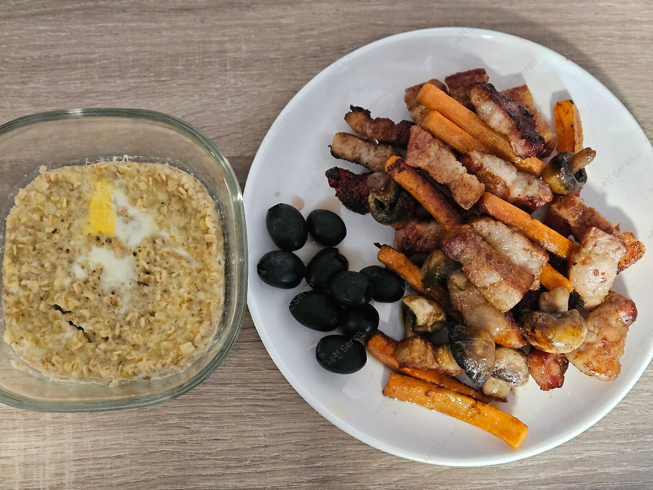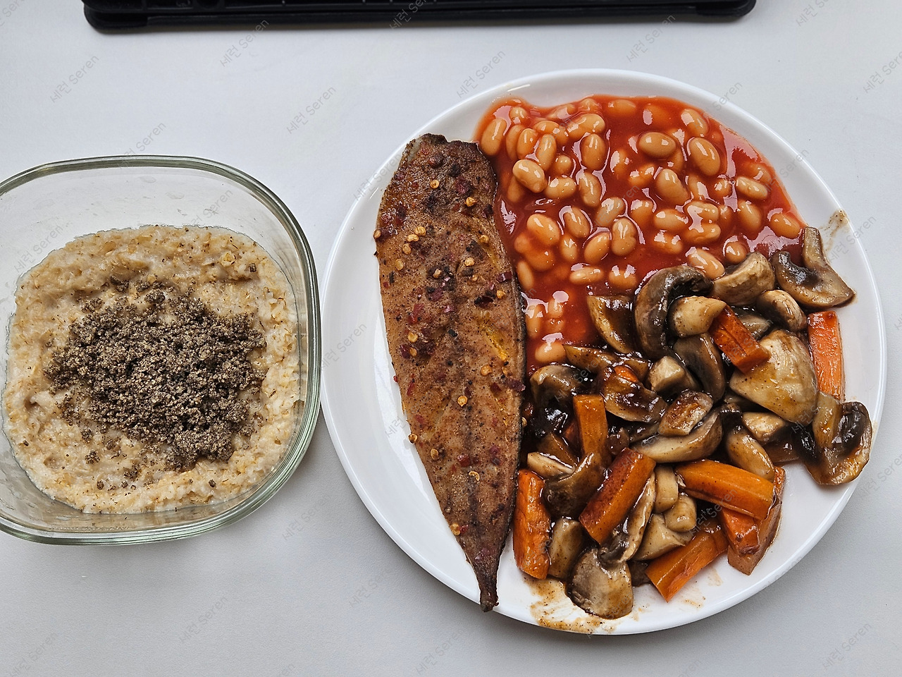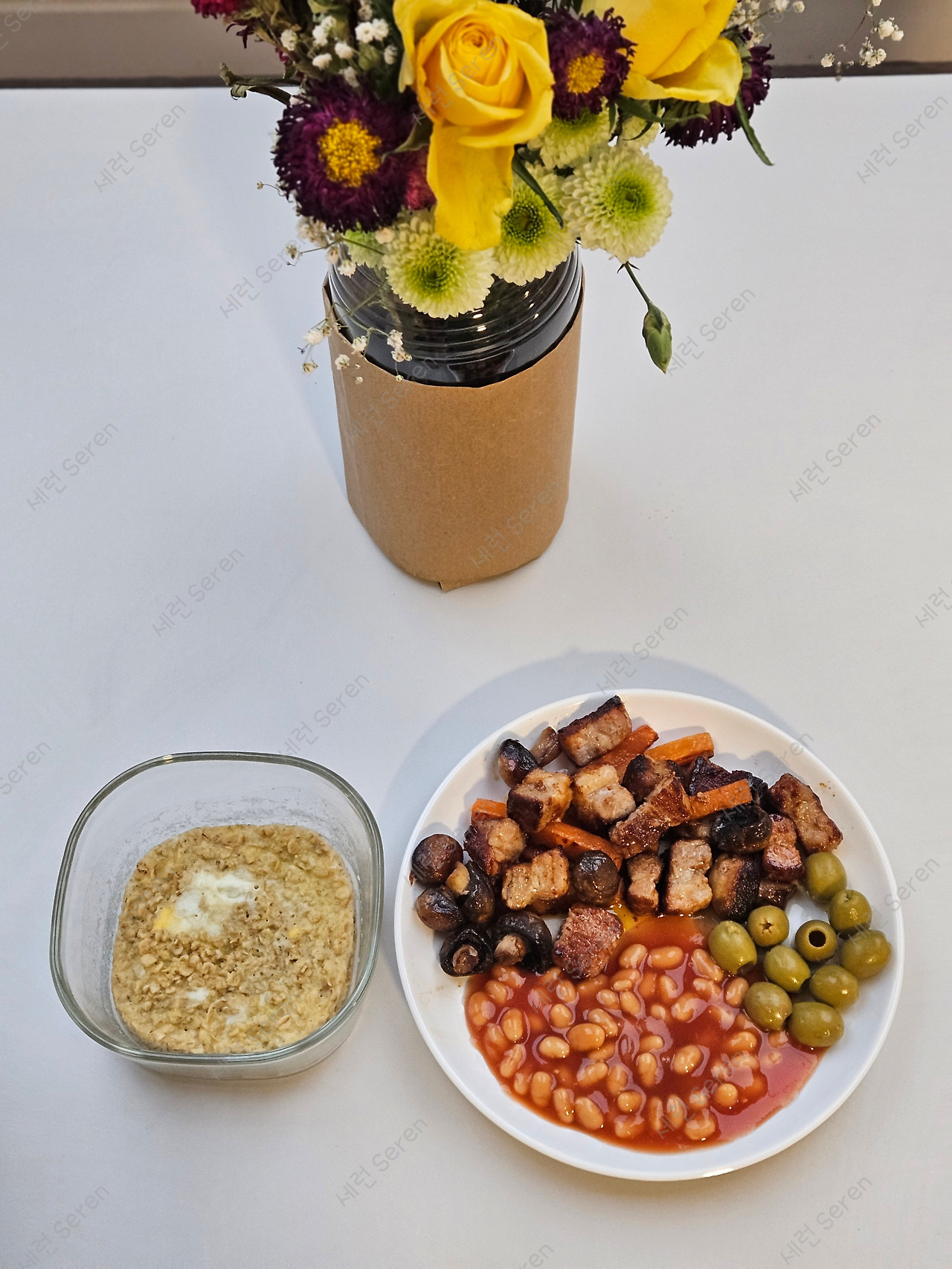 한편, 영국의 장바구니 물가는 나쁘지 않다. 대형 마트인 Lidl, Morrisons, TESCO 같은 곳을 가면 말이다. (간혹 시내 곳곳에 보이는 TESCO express나 Sainsbury's local은 소매점이라 비쌀 수 있다!) 덕분에 매 끼 부족하지 않게 단백질을 먹고 있다. 간장이나 Piri Piri 소스(아프리카식 매콤 소스)로 양념된 고등어구이 또는 Basa 생선(대구 같은 흰살 생선), 스테이크용 소고기, 삼겹살/목살, 고추장 양념 돼지고기, 블랙 푸딩 등등 입맛대로 골라 먹는 중이다. 밥으로는 쌀 대신 오트밀에 물을 잘박하게 붓고 계란을 풀어, 전자렌지에 3분 돌린 꾸덕한 Porridge(포리지), 이른바 ‘오트밀 죽'을 먹는다. 기분에 따라 한국에서 가져온 김과 들깨 가루를 곁들인다. 그 외 내가 좋아하는 토마토케첩 베이스의 베이크드 빈(Baked Beans)과 올리브를 매끼 먹는 편이다. 여하간 기숙사 근처에 대형 체인 마켓도 있고 개인 주방이 있는 스튜디오(studio, 원룸)에 사는 덕에, 나름 장보기와 조리 (요리라 하기엔 민망해서!)의 재미도 찾고, "혼자서도 잘 먹고 잘 사는 중"이다.