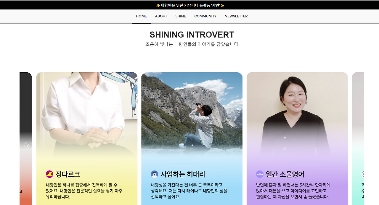- 내향인 커뮤니티의 이름 '샤인(shine)' 작명