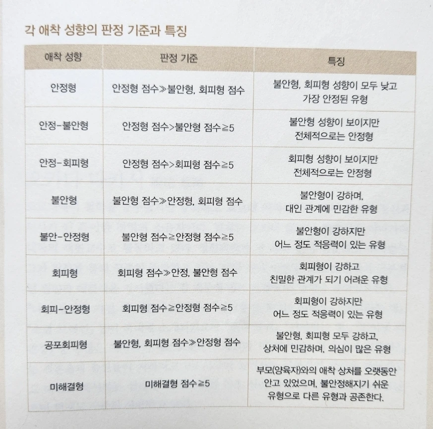 이 책을 다 읽고 부록에 있는 테스트를 해 본 결과 나는 ‘안정–회피형’이었다. 기본적으로는 안정적인데 상처받을 일에 대해서는 회피하는 성향을 갖고 있다. 나도 일부 회피적인 성향이 있다는 걸 발견하고 약간은 놀랐다. 한편 아래에 요약한 <회피형 인간>의 특징들 대다수는 남편의 성향과 많은 부분 부합하여 더욱 놀라웠다. 남편의 테스트 결과는 100% ‘회피형’으로 나왔고 우리는 서로 약간의 불편함을 느꼈다. 누가 ‘회피형 인간’으로 불리는 것을 기뻐할 수 있겠는가.