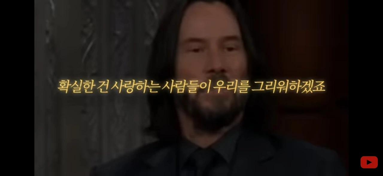 이 곡을 듣고 나서 곧바로, 유튜브 추천 알고리즘은 저에게 키아누 리브스 이야기를 들려주었습니다. 《매트릭스》로 유명했던 희대의 배우 키아누 리브스. 텁수룩한 수염에 모자를 눌러쓰고 할리우드 배우라기보다는 노숙자의 모습에 가까운 몰골로 종횡무진하고 있다는 소식이었어요. 그를 잘 몰랐는데 유튜브는 그가 현재 어떤 삶을 살고 있고 과거엔 어떤 일들이 벌어졌는지를 단 8분 만에 저에게 알려 줍니다. 그가 왜 노숙자들 옆에서 웅크리고 진짜로 잠을 자게 되었는지, 그가 왜 수백억의 큰돈을 백혈병 연구 재단에 기부하게 되었는지, 우리가 죽고 난 다음에 일어날 일이 무엇이냐는 질문에 '우리를 사랑하는 사람들이 우리를 그리워하는 일'이라고 대답했는지를 말입니다. 그는 지난 세월 동안 수많은 아픔을 겪었고 사랑하는 가족을 차례로 잃으면서 무엇보다 소중한 건 한낱 '돈'이 아니라 '사람'이라는 걸 깨달은 것이었어요.