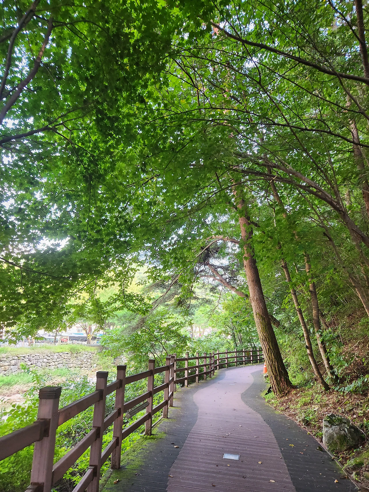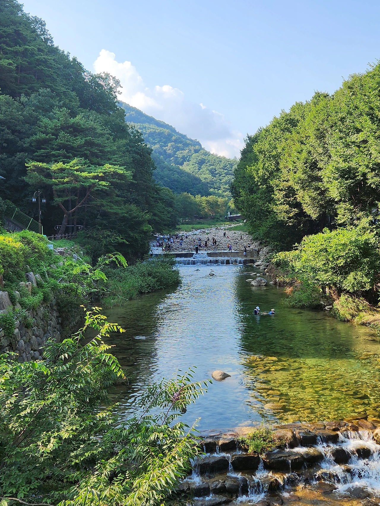 내일은 2시까지만 집에 도착하면 되기에 내려온 김에 아들들과 문경에서 하룻밤을 자기로 하였다. 낮에 문경새재 초입에 잠깐 들러 철철 넘치는 계곡물소리 듣고 길 위에 돗자리를 깔고 누운 많은 사람들을 보니 20년 전 남자친구였던 지금의 남편과 이곳에 왔던 기억이 돋아났다. 아득하고도 선명한 과거의 추억 덕분에, 찜통 같은 더위와 습한 체취가 청명하고 맑은 하늘에 씻긴 듯 날아올랐다.
