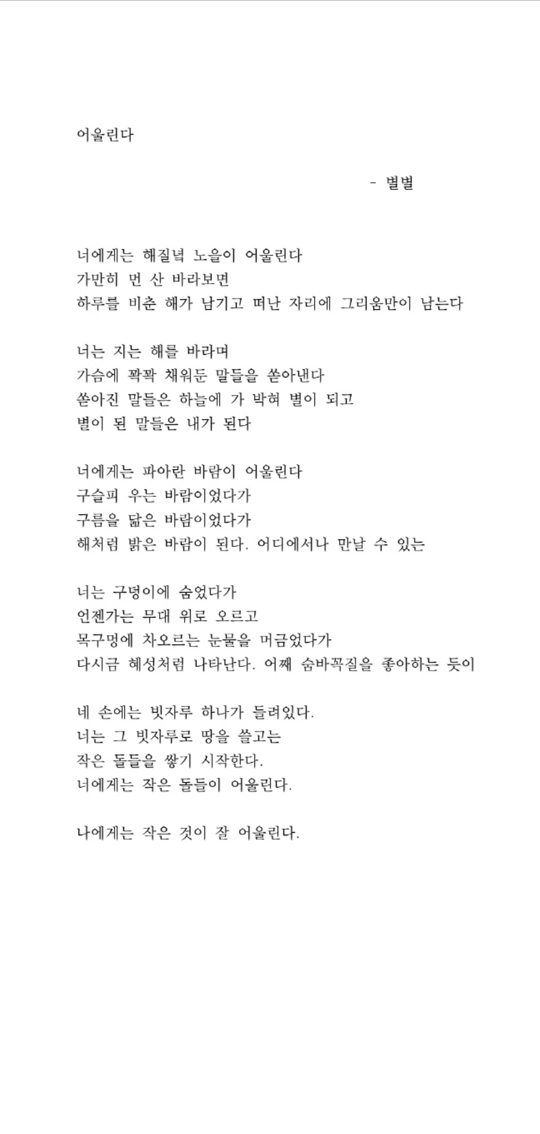 * '별별'은 문학상담 수업 중에 만든 저의 필명입니다~^^