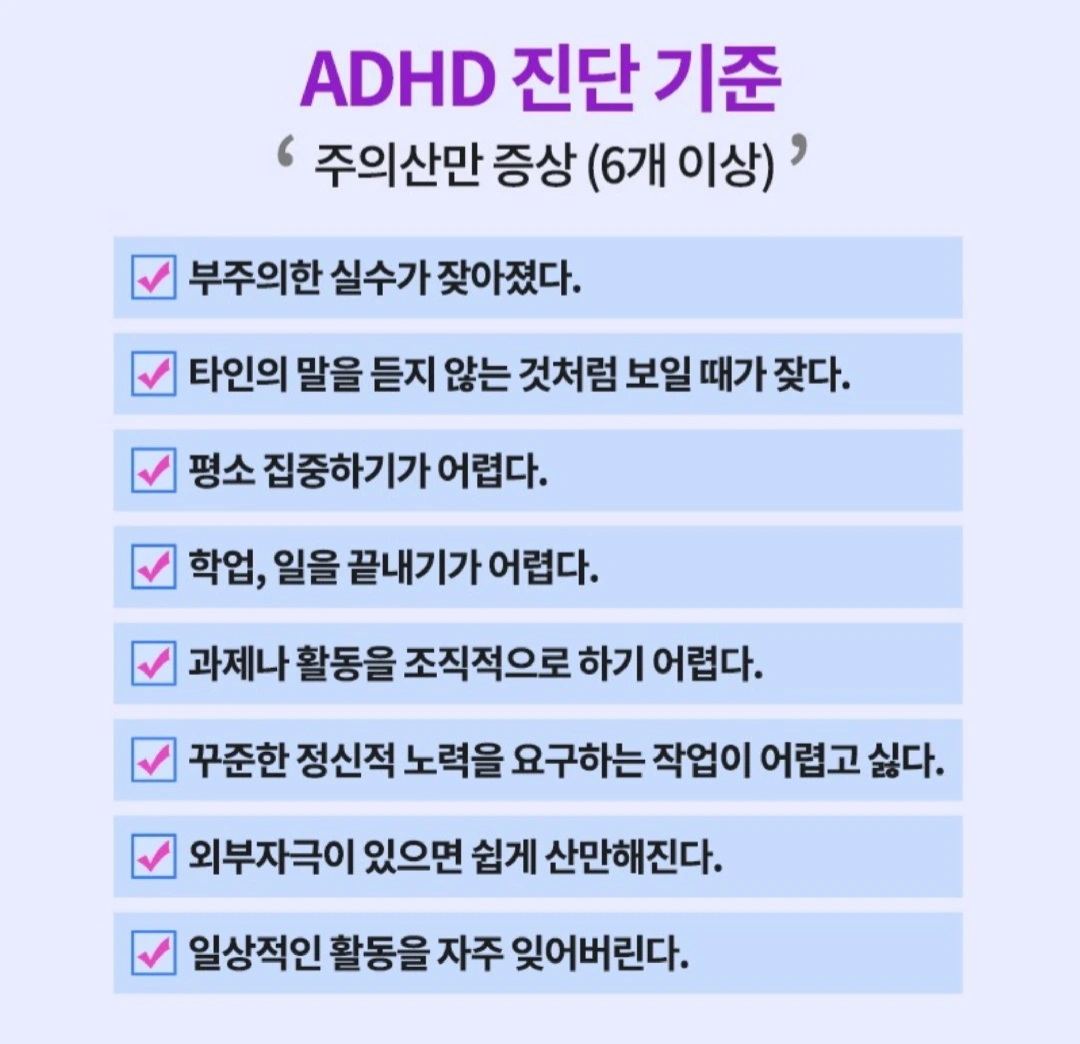 아마도 체크리스트를 보면 조용한 ADHD 증상의 두세 가지 정도는 많은 분들에게도 해당되지 않을까 싶다. 우리가 살아가는 바쁜 사회 속에서 산만한 경향성은 점차 짙어지기 마련이니까 말이다.