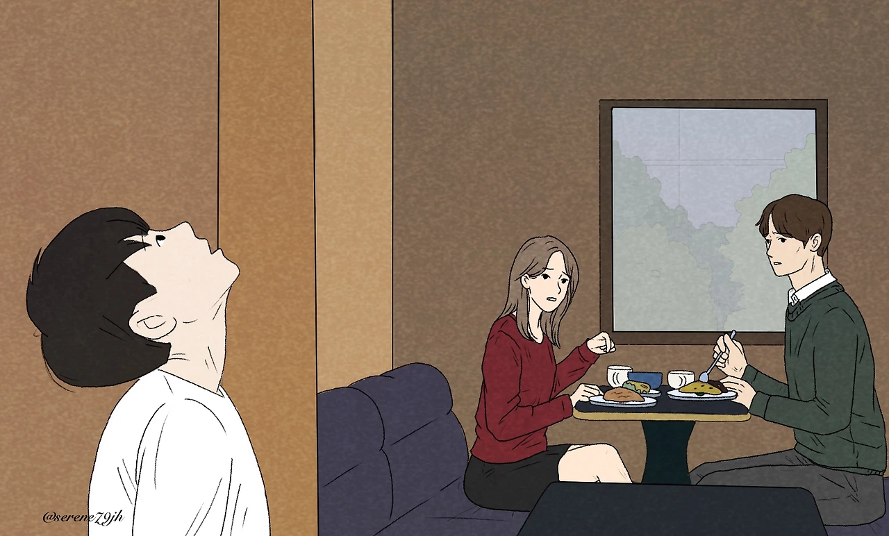 '그래 이상할 수 있지. 밥 한번 먹는데 눈을 굴리고 콧구멍도 벌렁거리고 입을 벌려 혀를 내빼고 목을 뒤로 꺾고 엉덩이를 들썩이니. 엄마인 나도 이상한데 당신들은 얼마나 이상하겠어. 그래도 그렇지. 예의 없이 그렇게 대놓고 구경할 건 뭐야.' 하는 생각들이 내 안에서 수군거렸고 얼굴이 벌겋게 달아오르고 식욕이 떨어졌다. 겉으로는 태연한 척했지만 밥을 먹는 내내 시선이 의식되고 얹힐 것 같았다. 고개를 돌려 자신들의 식사에 집중하면 좋겠는데 계속 쳐다보는 그들의 행동이 너무 불쾌해서 대충 먹고 빨리 일어섰다.