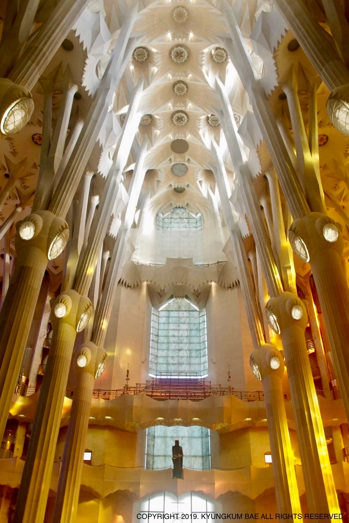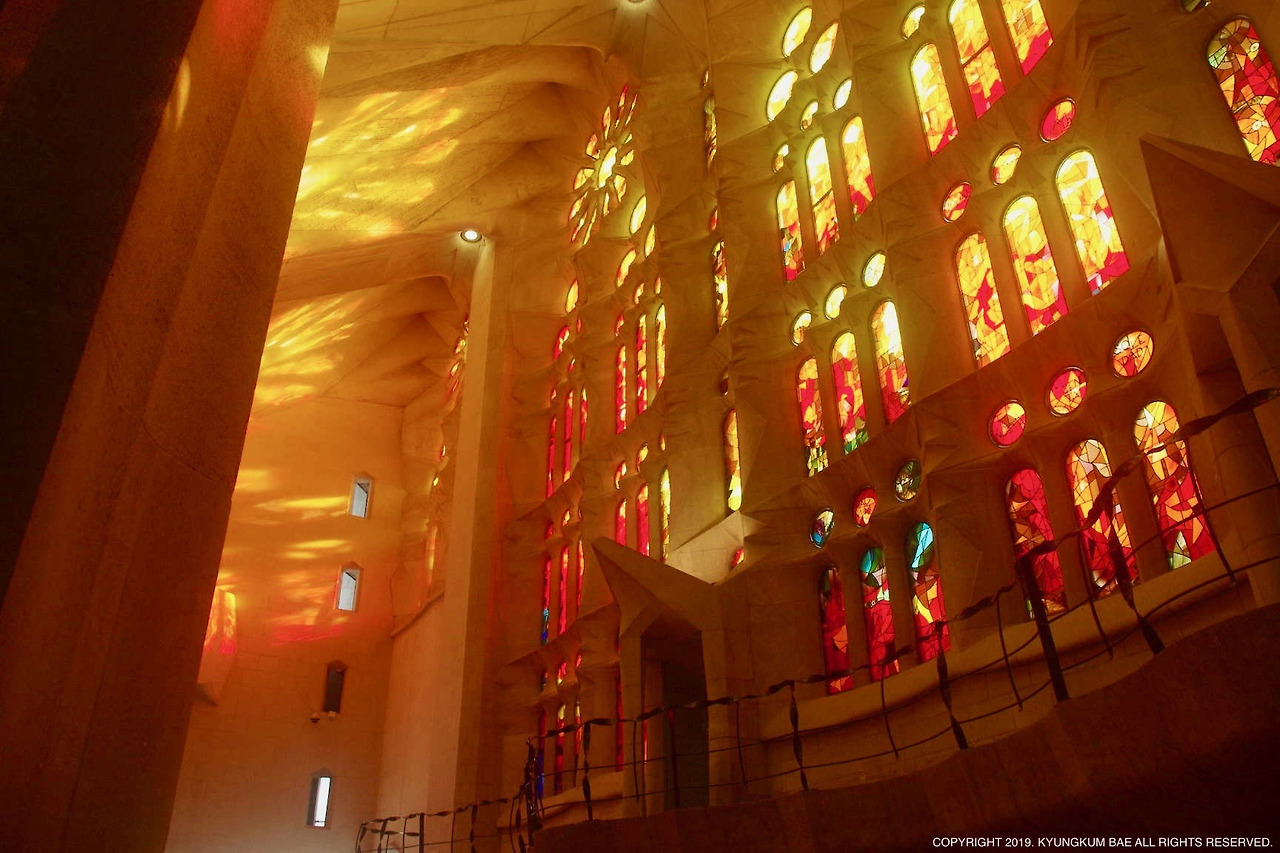 가우디의 건축은 그가 빛을 어떻게 이해하고, 자신의 건축에 적용했는지를 알고 나서야 이해할 수 있다고 한다. 사그라다 파밀리아는 그야말로 빛의 향연이었다. 태양이 이동하는 방향에 따라 성당의 내부는 사계(四季)를 넘나들었고, 무한히 빛을 내리쪼이는 하늘의 투명한 빛을 그대로 받아 머금은 이곳은 순백의 나무가 자라는 숲 속의 성스러운 둥지가 되기도 했다. 공간 가득히 빛이 머무르기에 마치 어미의 자궁 같은 따사로움마저 품고 있었다.