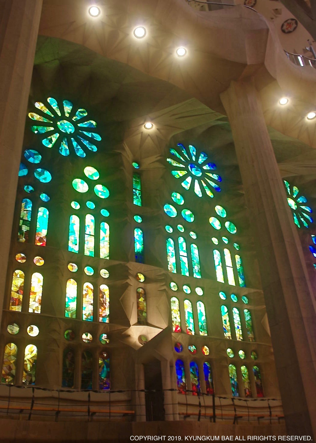 예수의 탄생과 생명을 표현한 성당의 동쪽 파사드 내부는 푸른색 계열의 스테인드 글라스가, 예수의 수난과 죽음을 표현한 성당의 서쪽 파사드 내부는 노란색과 붉은색 계열의 스테인드 글라스가 설치되어 있었다. 스테인드 글라스를 투과하여 내부로 스며드는 빛감에, 황홀하다는 말은 이런 광경을 두고 쓰는 표현인 것 같았다.