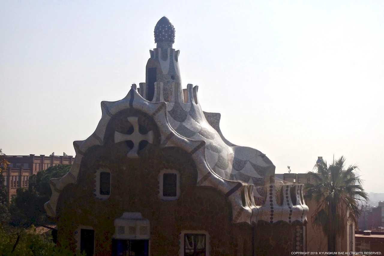 반짝이는 것들은 보는 사람의 마음을 설레게 한다. 구엘공원의 자연 광장에 들어서며 받은 첫 느낌이었다. 한없이 환한 정오의 햇살 아래 가우디의 손길로 꾸며진 구엘 공원의 벤치는 마치 총천연색 파도 같았다. 과자로 지어진 헨델과 그레텔의 집이 연상되기도 하고, 이상한 나라의 앨리스가 떠오르기도 하는 건, 아마도 타일로 꾸며진 건물과 벤치가 자연과 천연덕스럽게 어우러져 넘실대는 듯한 모습이 재미있었기 때문인 것 같다. 이곳은 천진난만하다.