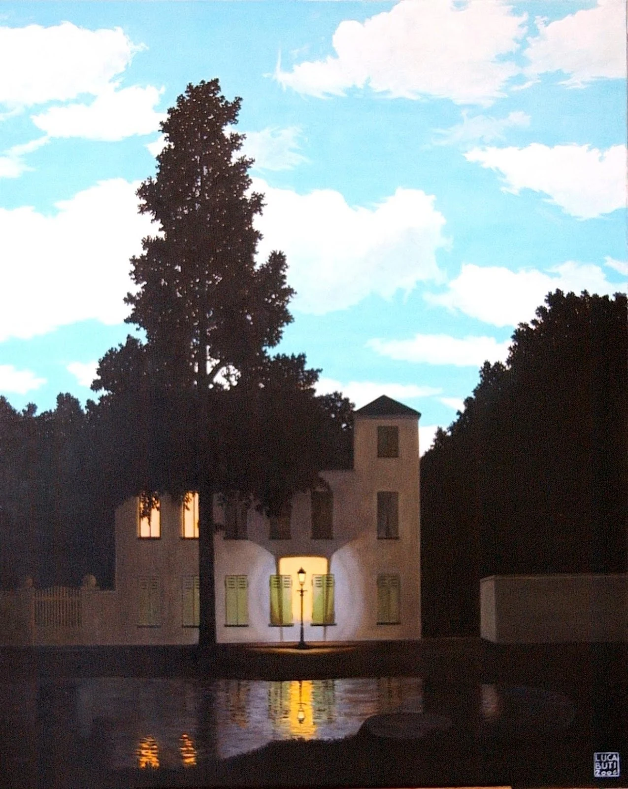 건물에는 밤이 드리웠는데 등 뒤로 보이는 푸른 하늘은 대낮이다. 이것은 초현실주의 화가의 현실을 뛰어넘는 대담한 상상이다. 하지만 만약 태양빛이 갈라놓는 빛과 어둠의 영역이 예리했다면 우리는 이런 장면을 현실 속에서 볼 수 있었을 것이다.